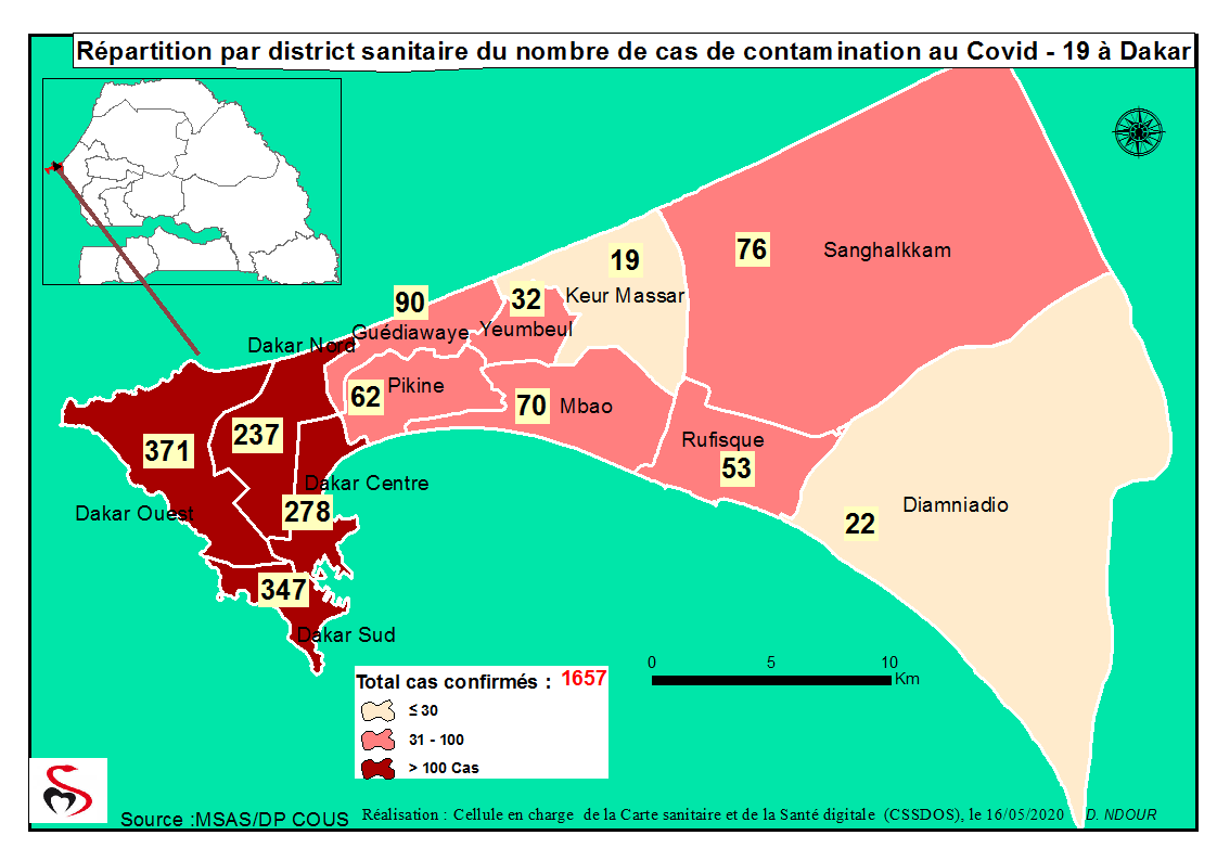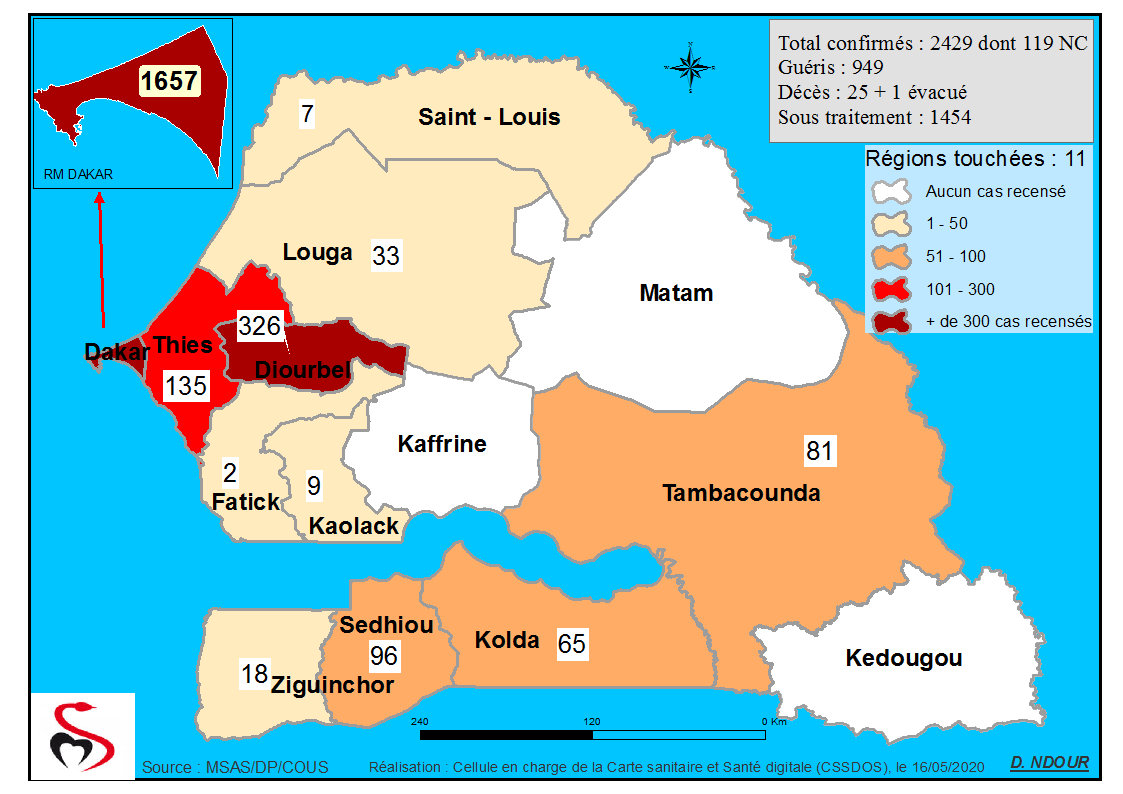 Coronavirus : Répartition par Région et District des cas de contamination au Covid-19 au Sénégal du 16 Mai 2020