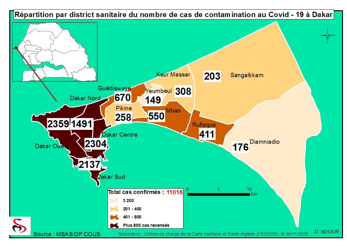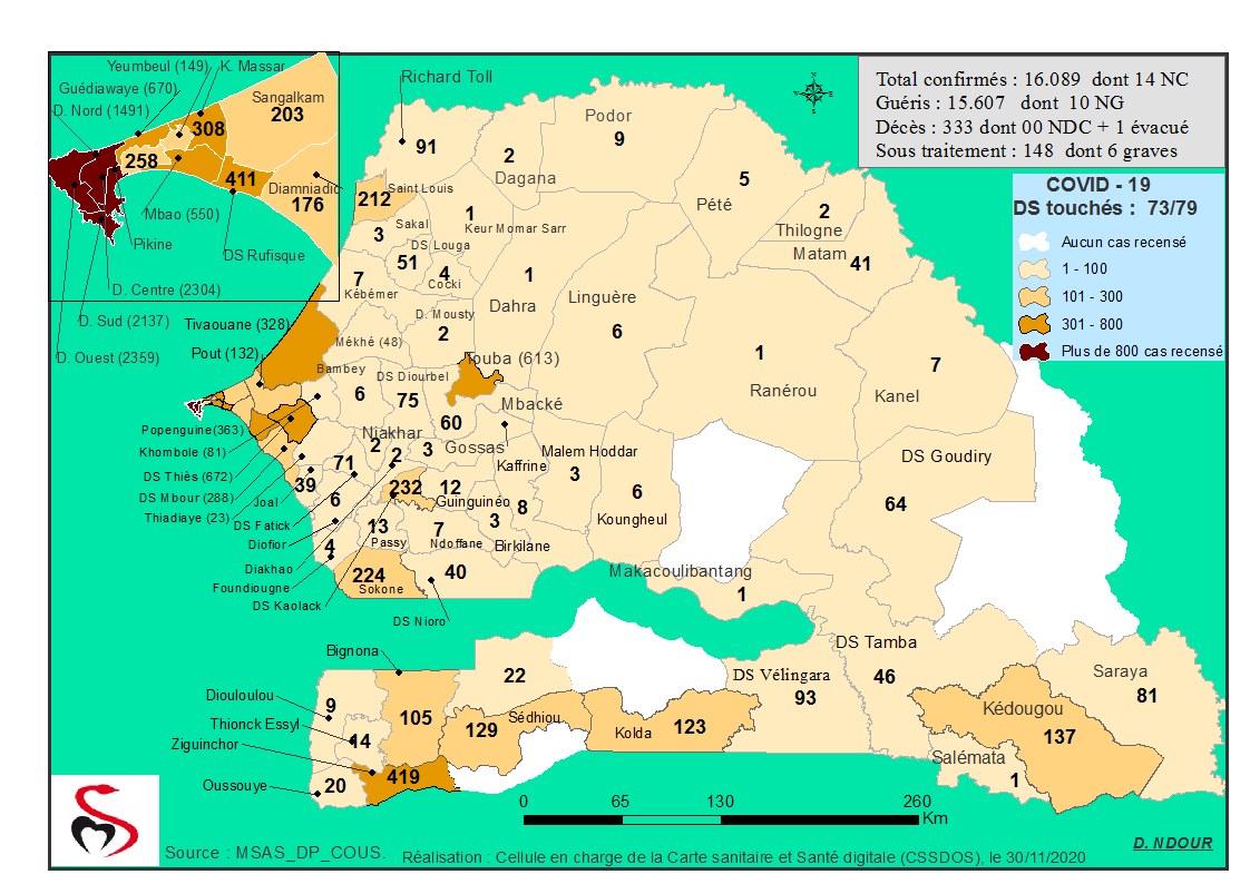 Coronavirus : Répartition par Région et District des cas de contamination à la Covid-19 au Sénégal du Lundi 30 Novembre 2020
