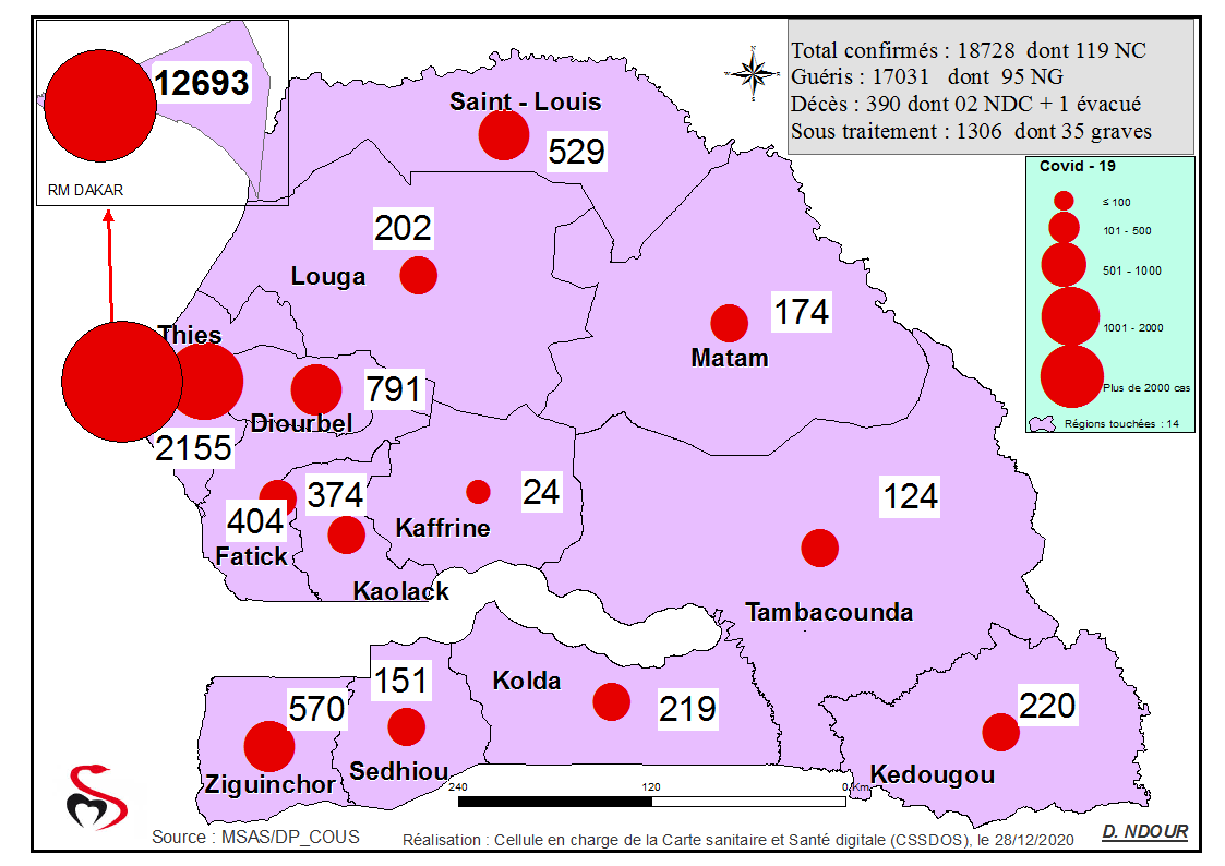 Coronavirus : Répartition par Région et District des cas de contamination à la Covid-19 au Sénégal du Lundi 28 Décembre 2020