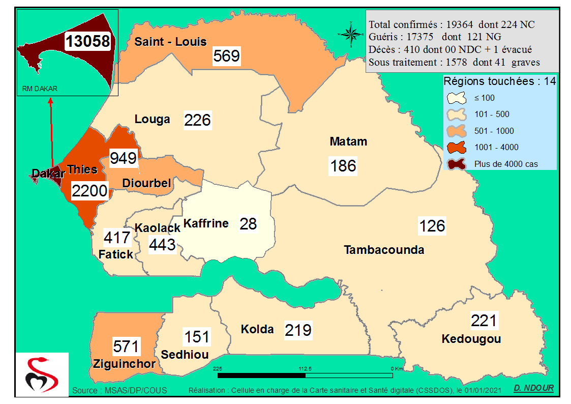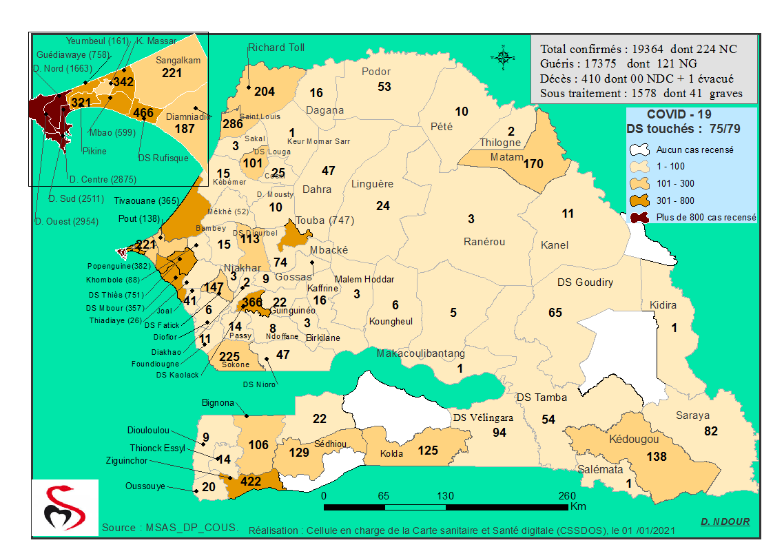 Coronavirus : Répartition par Région et District des cas de contamination à la Covid-19 au Sénégal du Vendredi 01 Janvier 2021