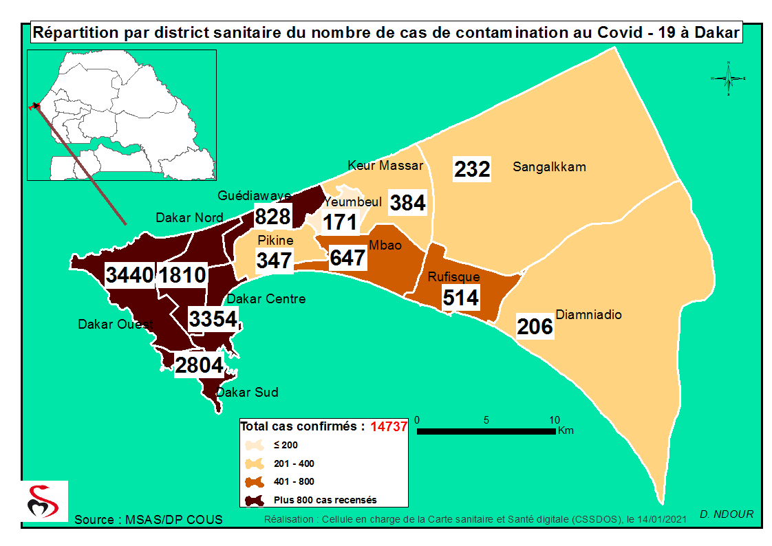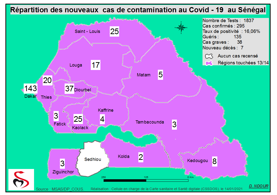 Coronavirus : Répartition par Région et District des cas de contamination à la Covid-19 au Sénégal du Jeudi 14 Janvier 2021