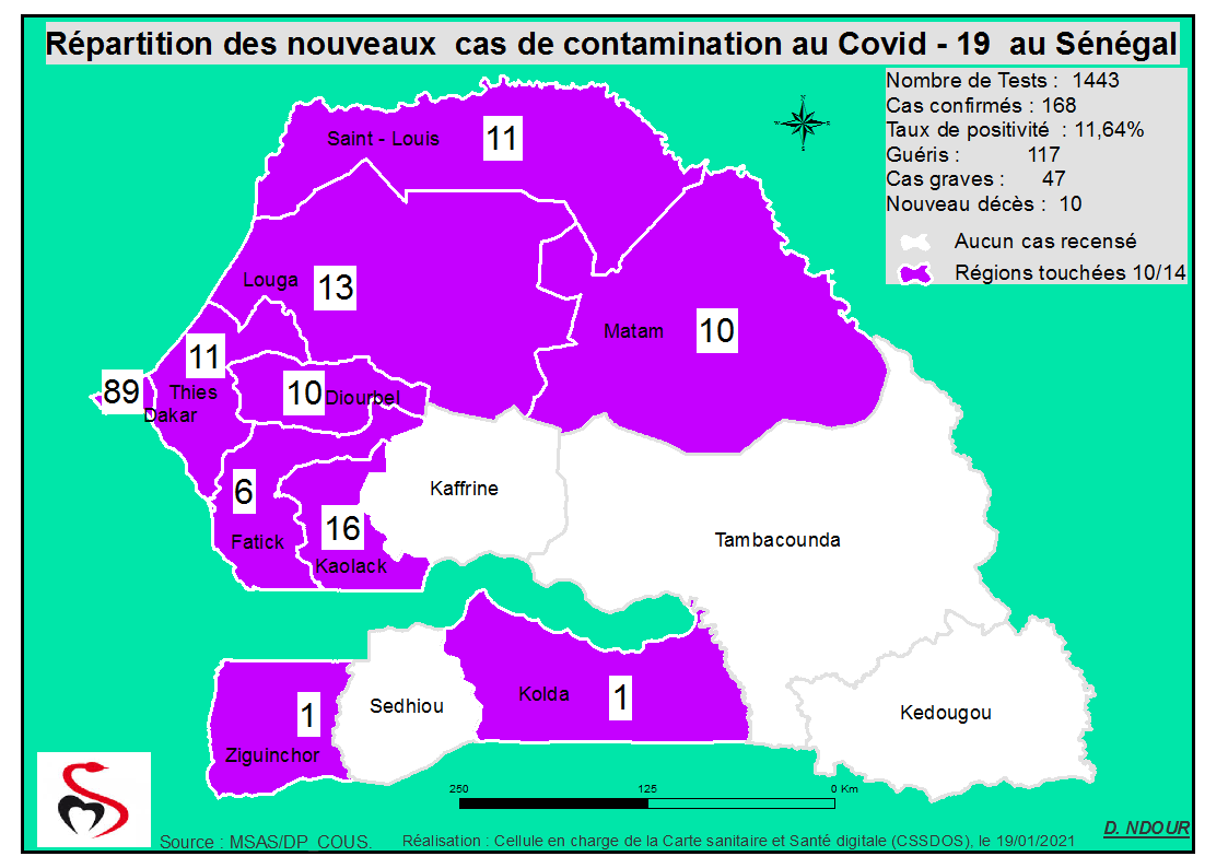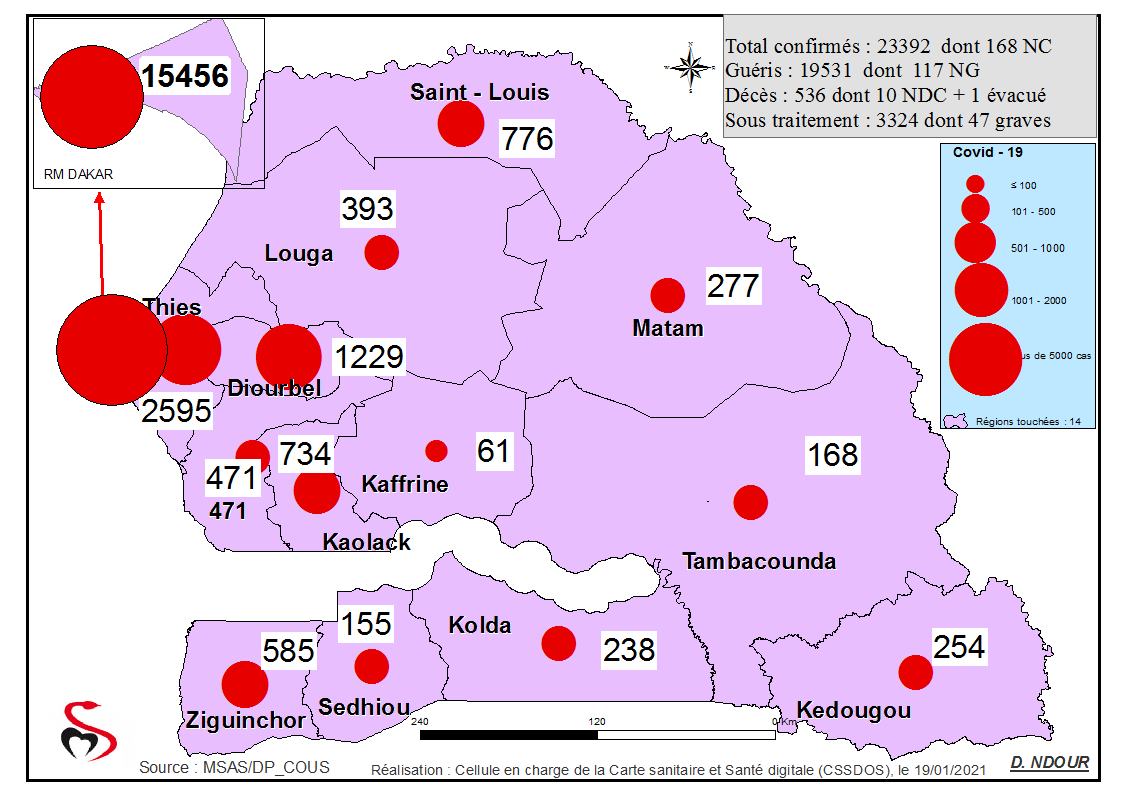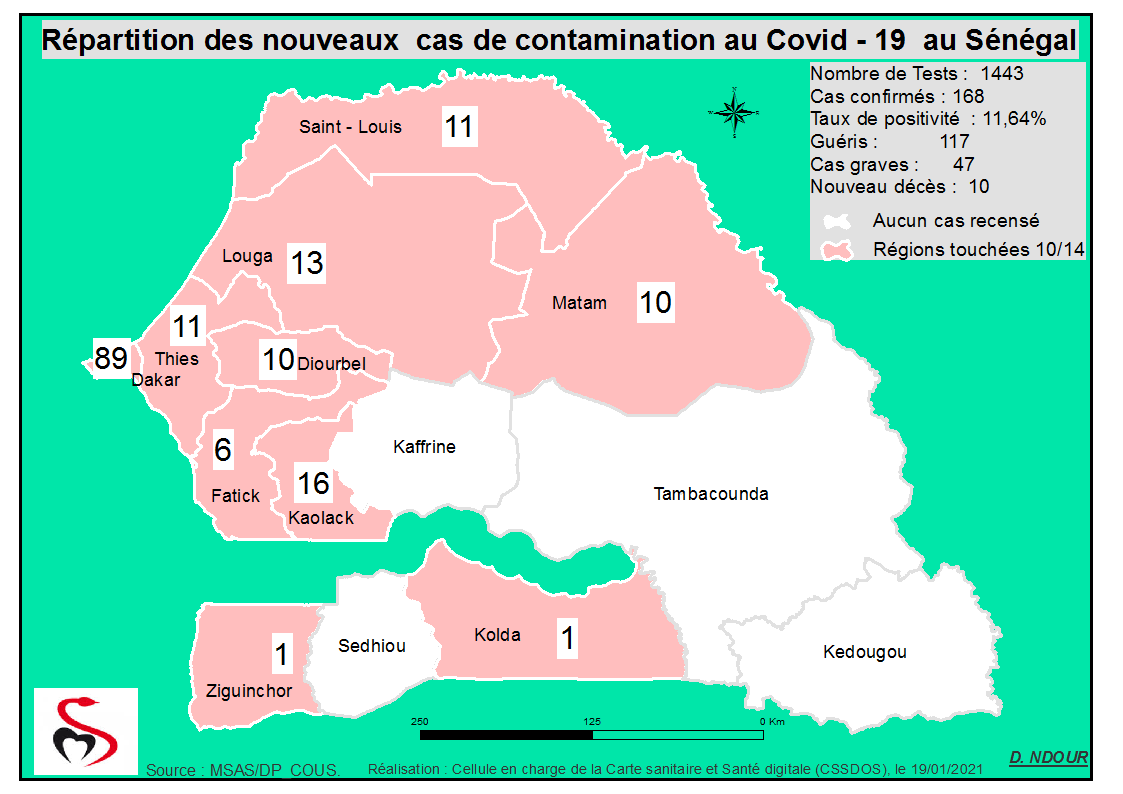 Coronavirus : Répartition par Région et District des cas de contamination à la Covid-19 au Sénégal du Mardi 19 Janvier 2021