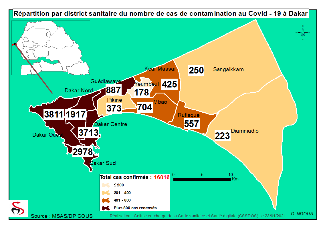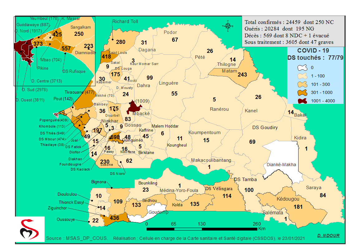 Coronavirus : Répartition par Région et District des cas de contamination à la Covid-19 au Sénégal du Samedi 23 Janvier 2021