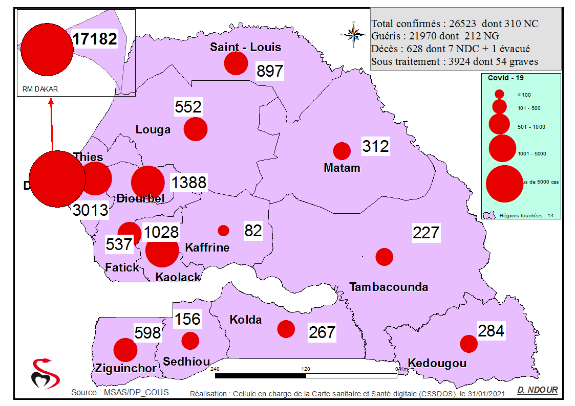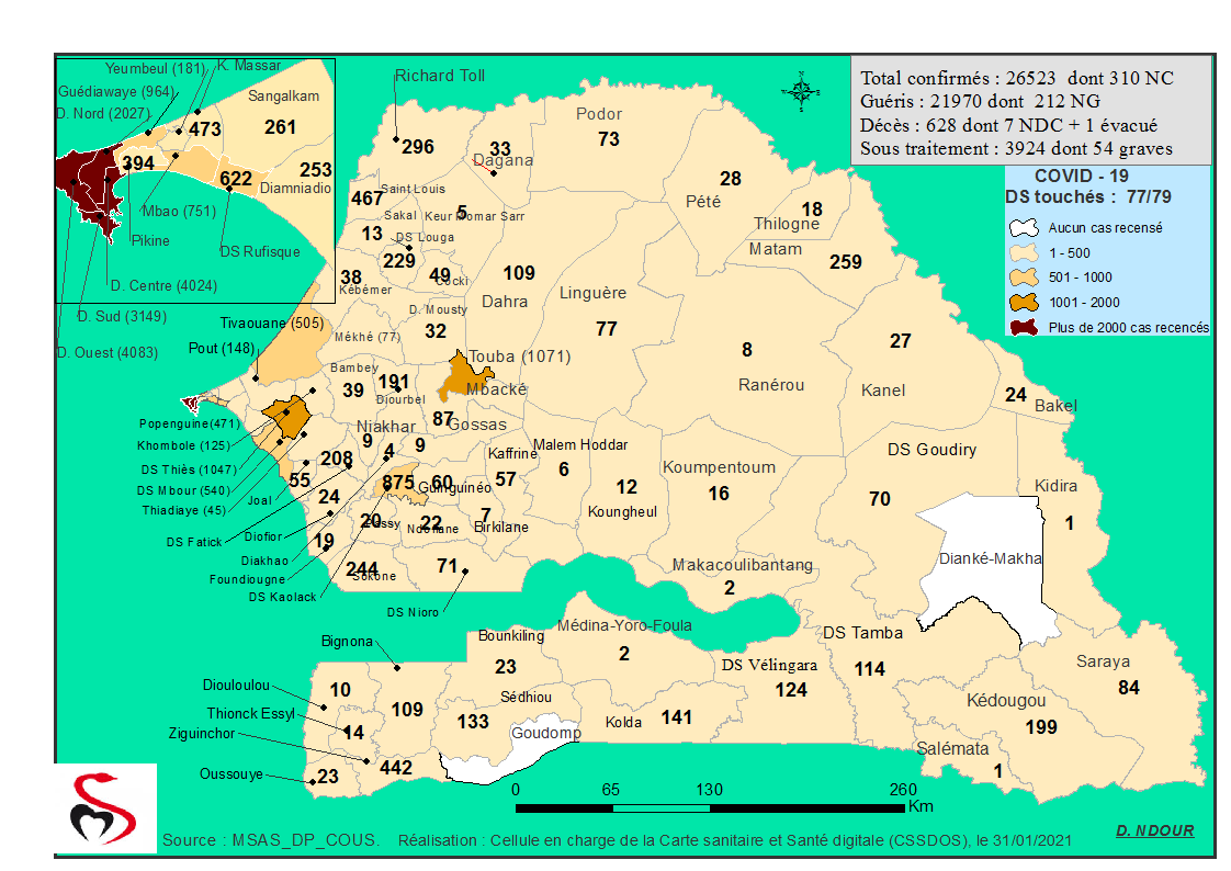 Coronavirus : Répartition par Région et District des cas de contamination à la Covid-19 au Sénégal du Dimanche 31 Janvier 2021