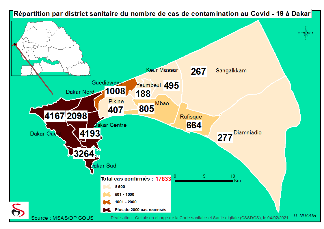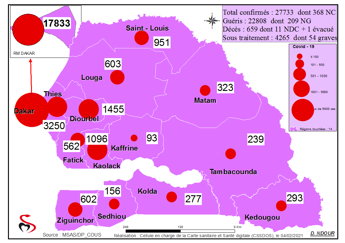 Coronavirus : Répartition par Région et District des cas de contamination à la Covid-19 au Sénégal du Jeudi 04 Février 2021
