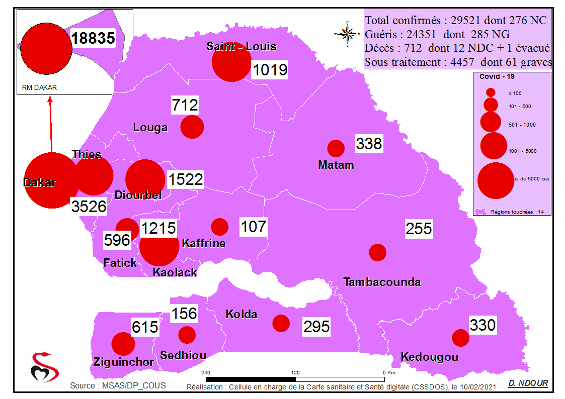 Coronavirus : Répartition par Région et District des cas de contamination à la Covid-19 au Sénégal du Mercredi 10 février 2021
