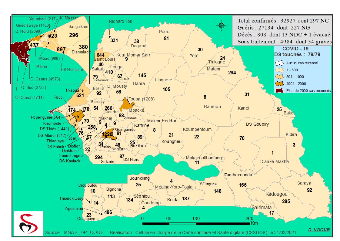 Coronavirus : Répartition par Région et District des cas de contamination à la Covid-19 au Sénégal du Dimanche 21 février 2021