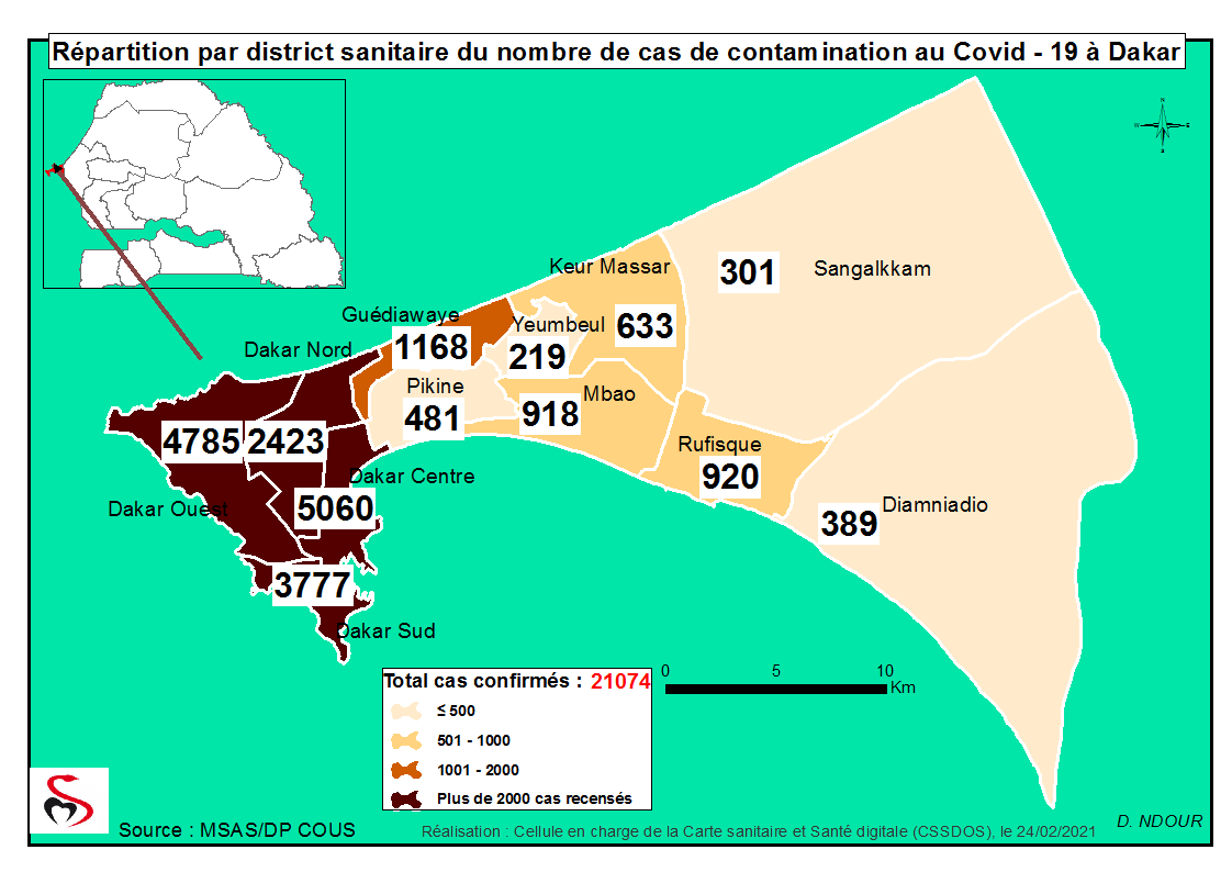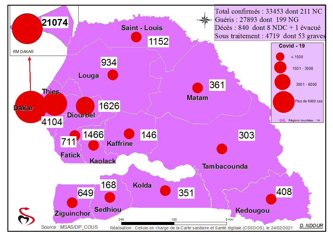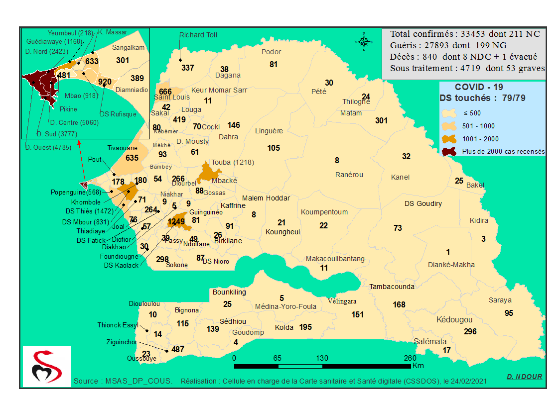 Accueil / Mediathèque / Phototheques / Coronavirus : Répartition par Région et District des cas de contamination à la Covid-19 au Sénégal du Mercredi 24 février 2021