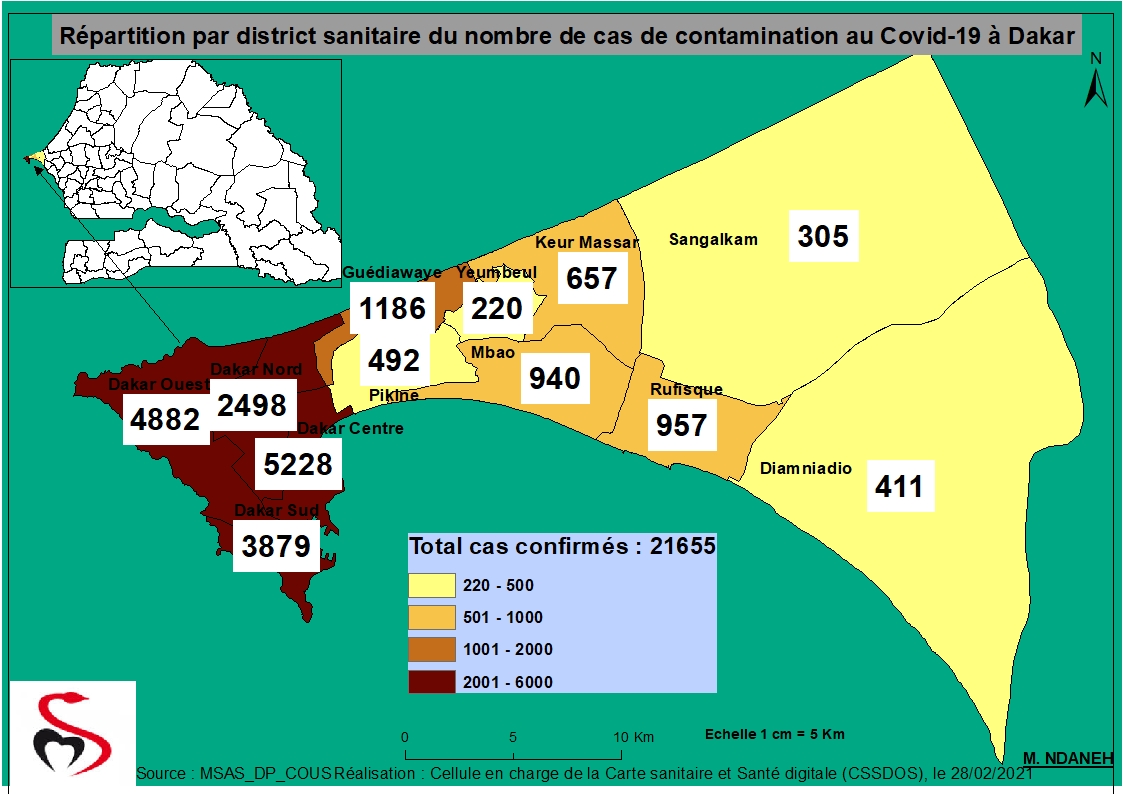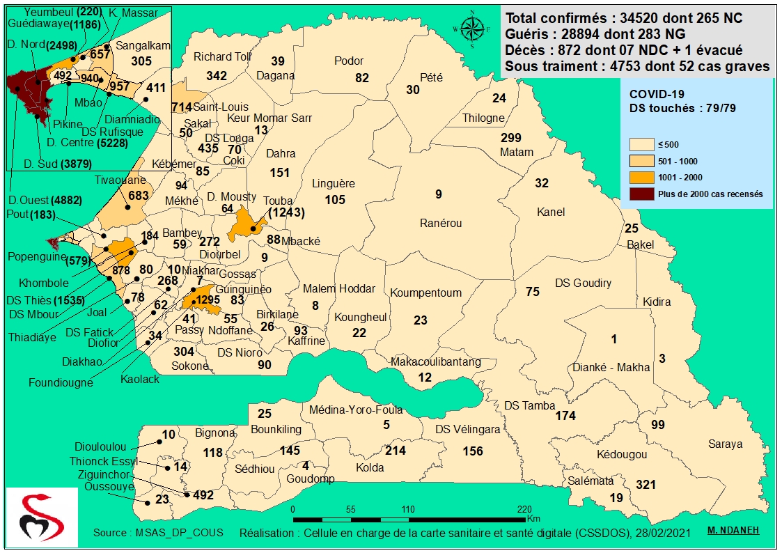 Coronavirus : Répartition par Région et District des cas de contamination à la Covid-19 au Sénégal du Dimanche 28 février 2021