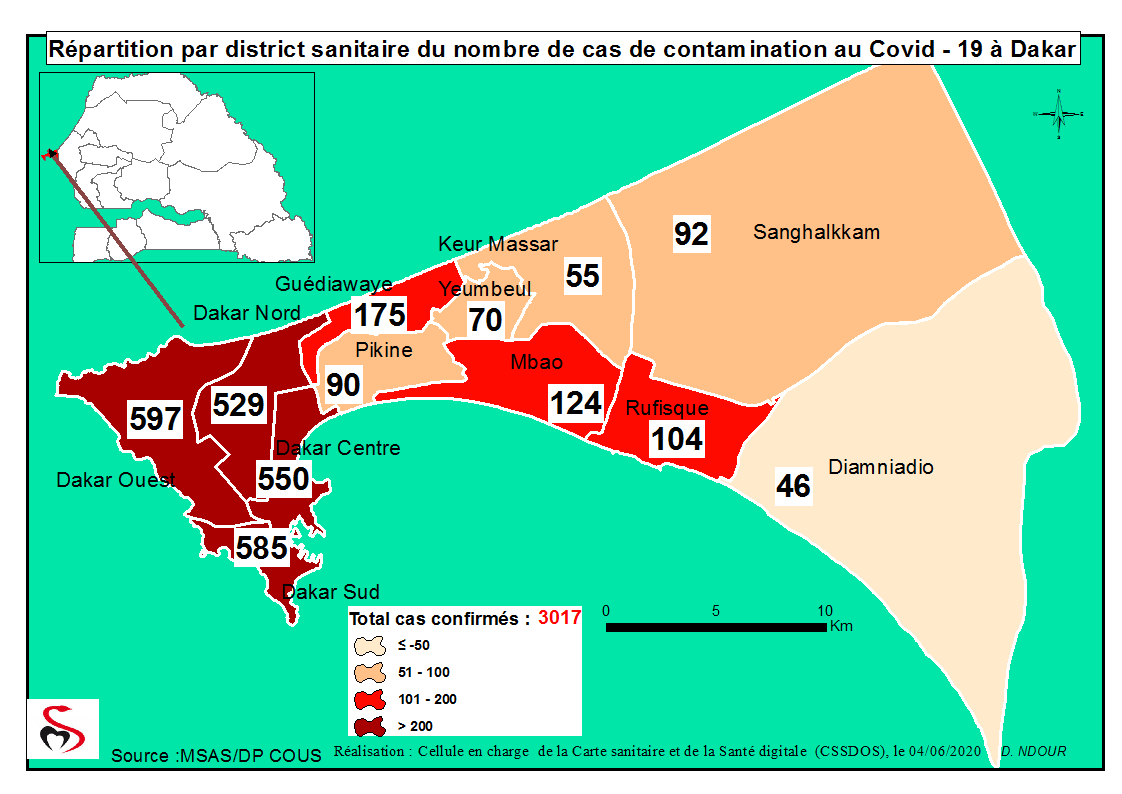 Coronavirus : Répartition par Région et District des cas de contamination au Covid-19 au Sénégal du 04 Juin 2020