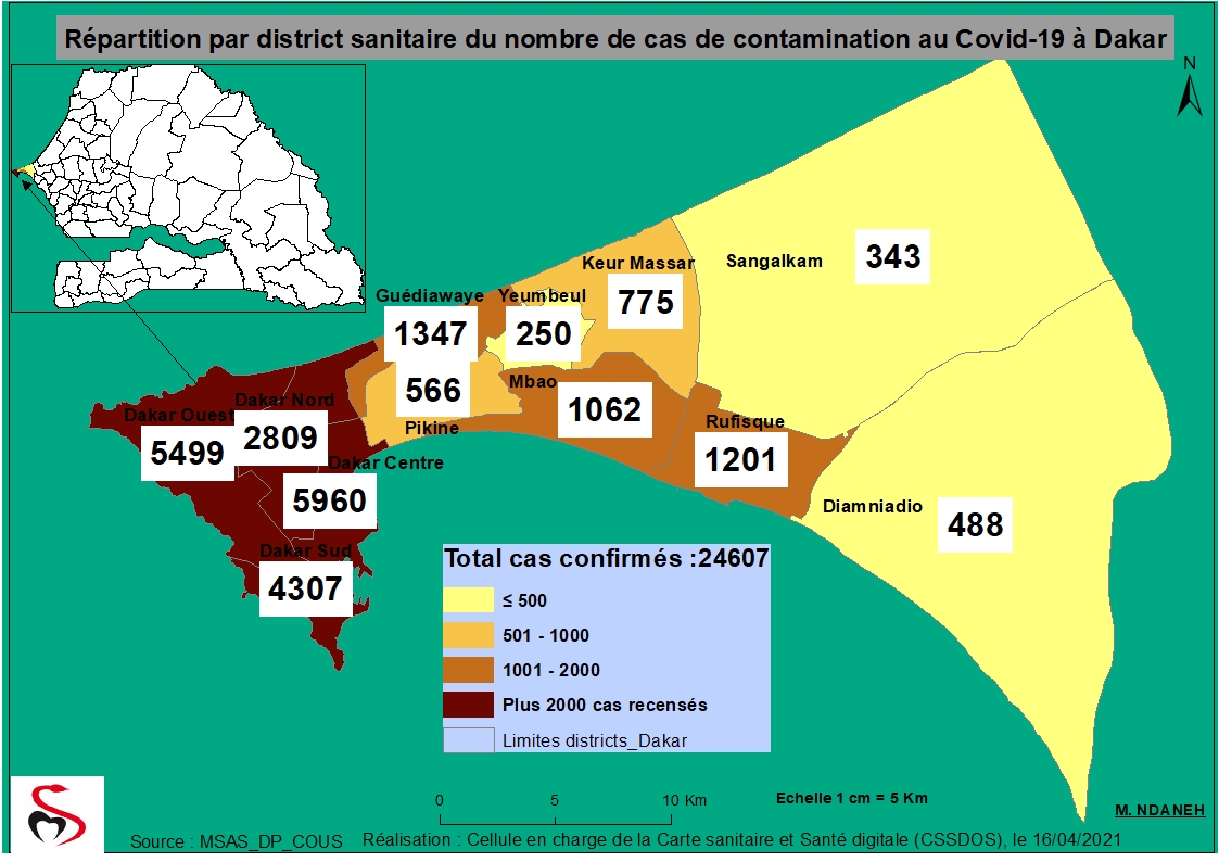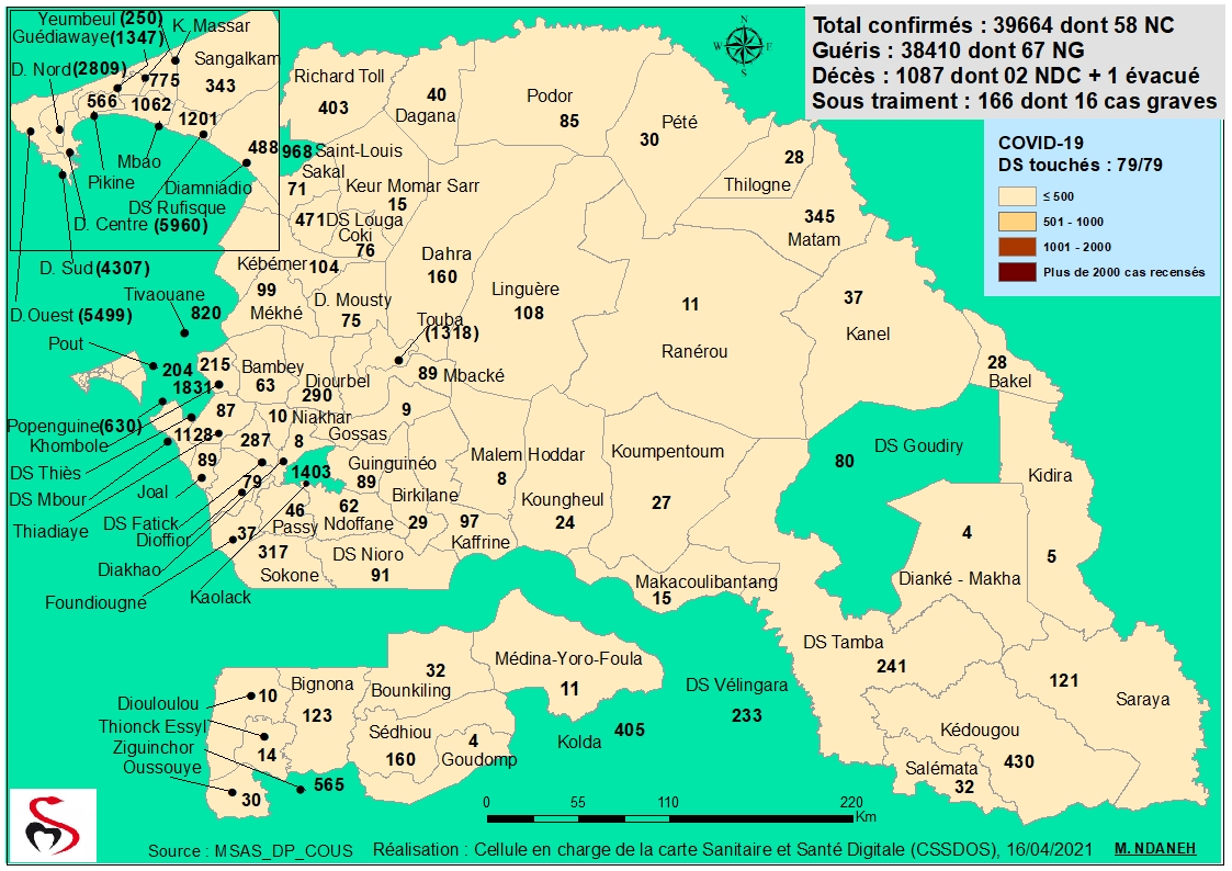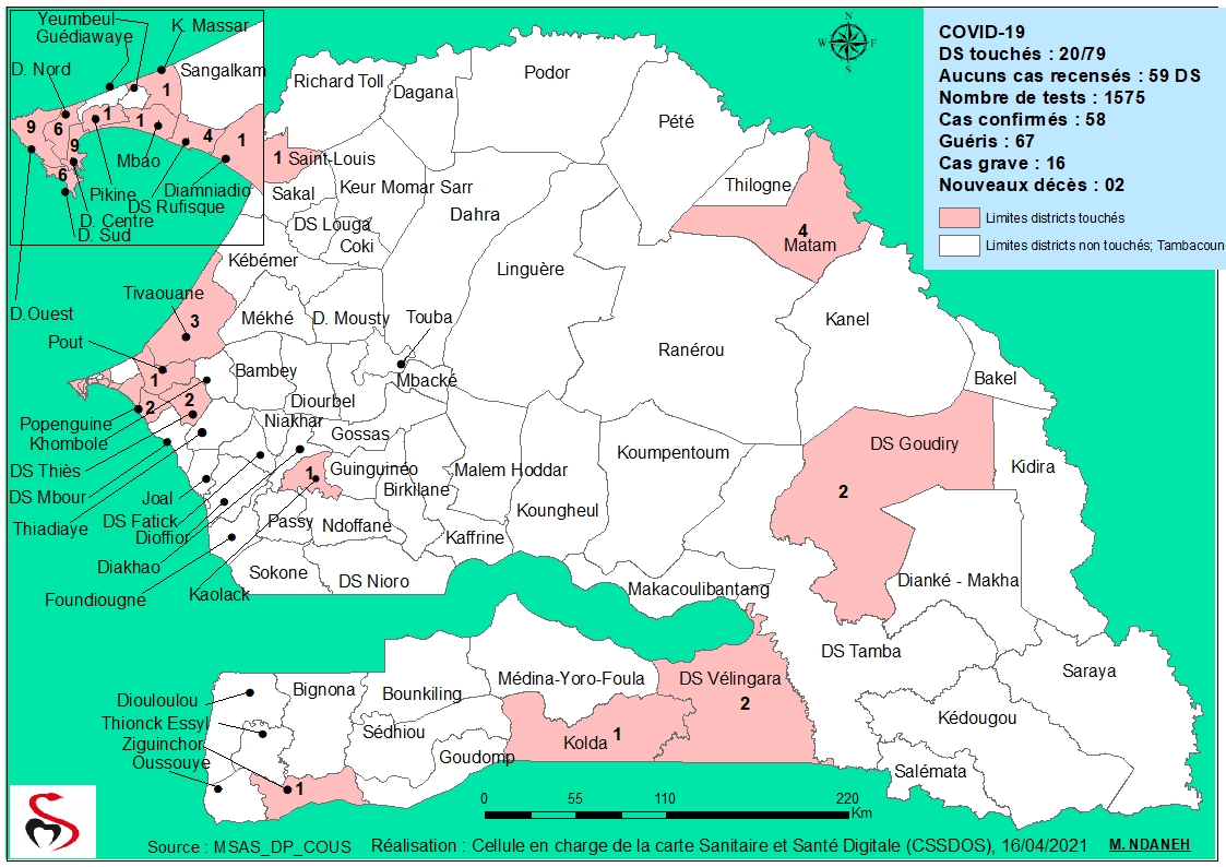 Coronavirus : Répartition par Région et District des cas de contamination à la Covid-19 au Sénégal du Vendredi 16 Avril 2021