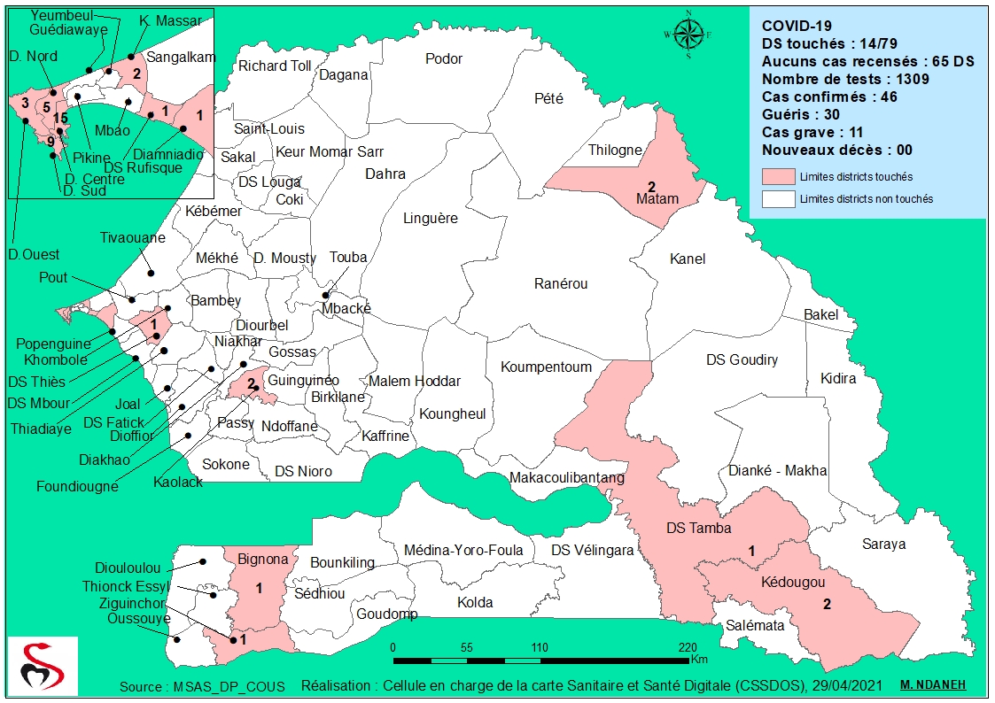 Coronavirus : Répartition par Région et District des cas de contamination à la Covid-19 au Sénégal du Jeudi 29 Avril 2021