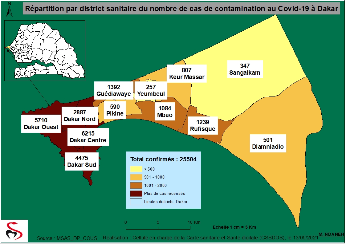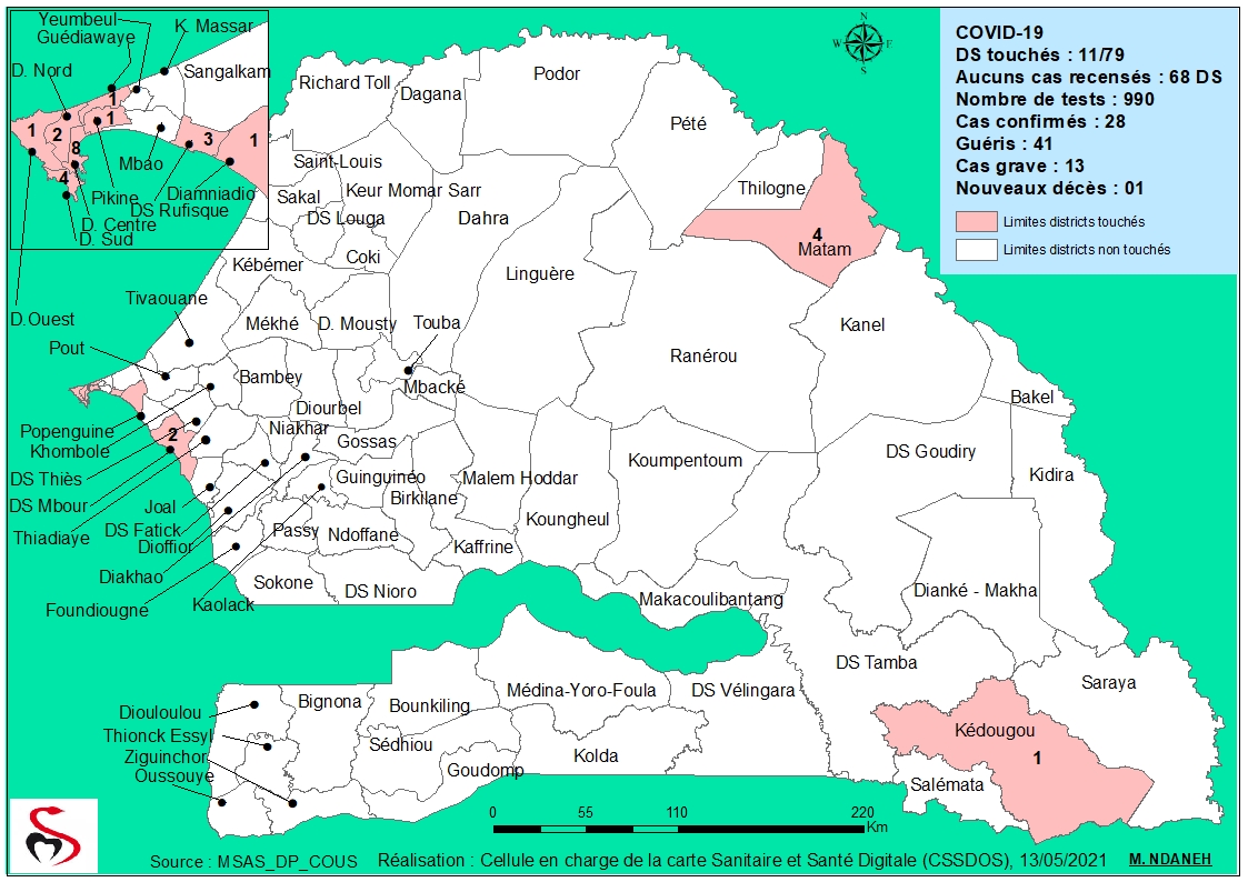Coronavirus : Répartition par Région et District des cas de contamination à la Covid-19 au Sénégal du Jeudi 13 Mai 2021
