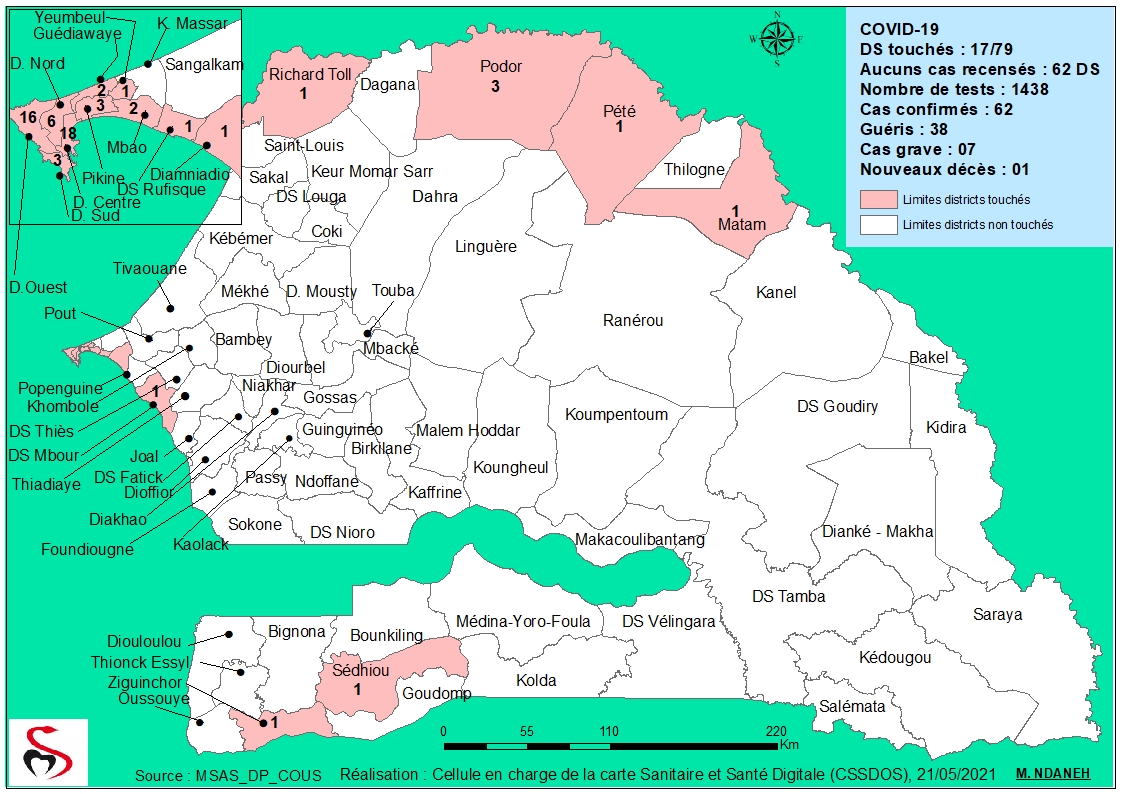 Coronavirus : Répartition par Région et District des cas de contamination à la Covid-19 au Sénégal du Vendredi 21 Mai 2021