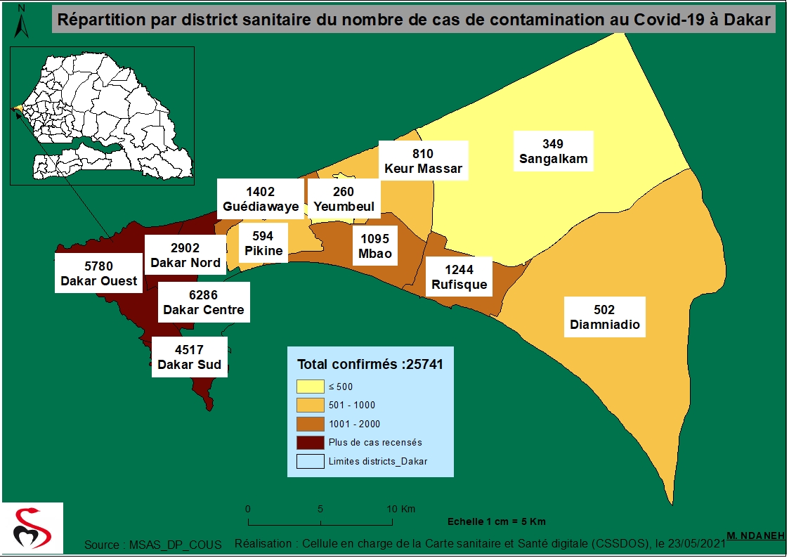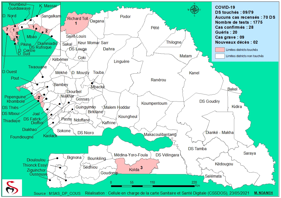 Coronavirus : Répartition par Région et District des cas de contamination à la Covid-19 au Sénégal du Dimanche 23 Mai 2021