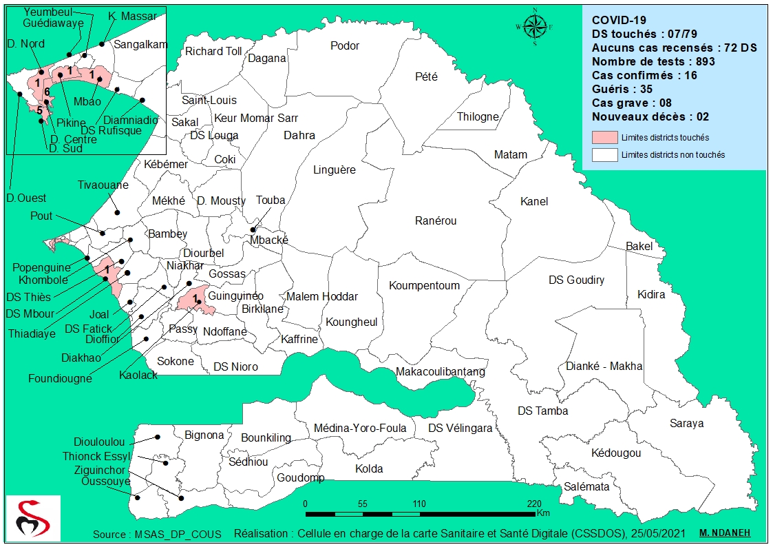 Coronavirus : Répartition par Région et District des cas de contamination à la Covid-19 au Sénégal du Mardi 25 Mai 2021