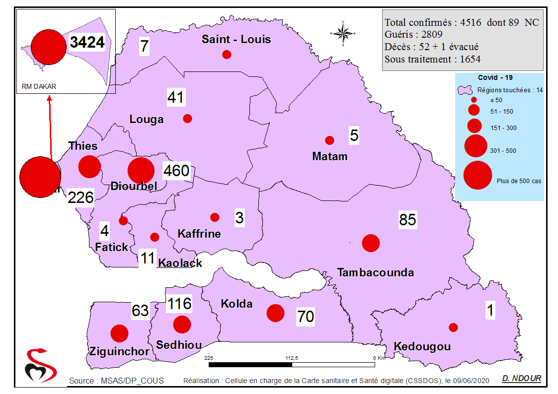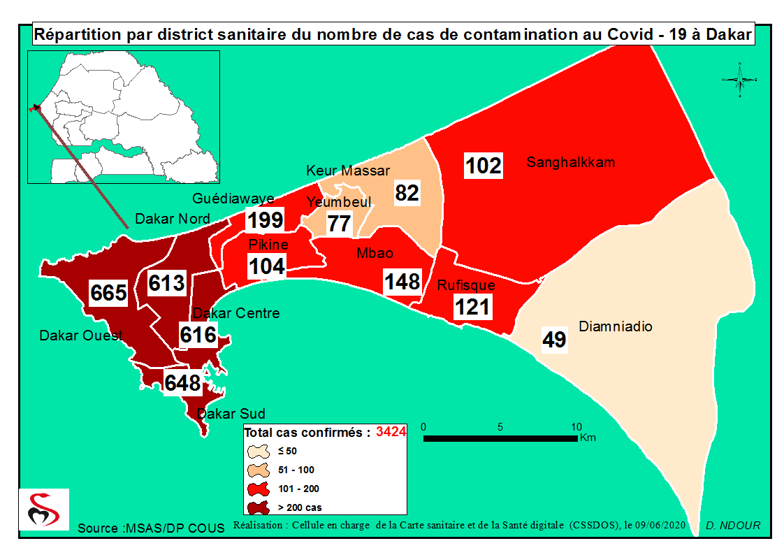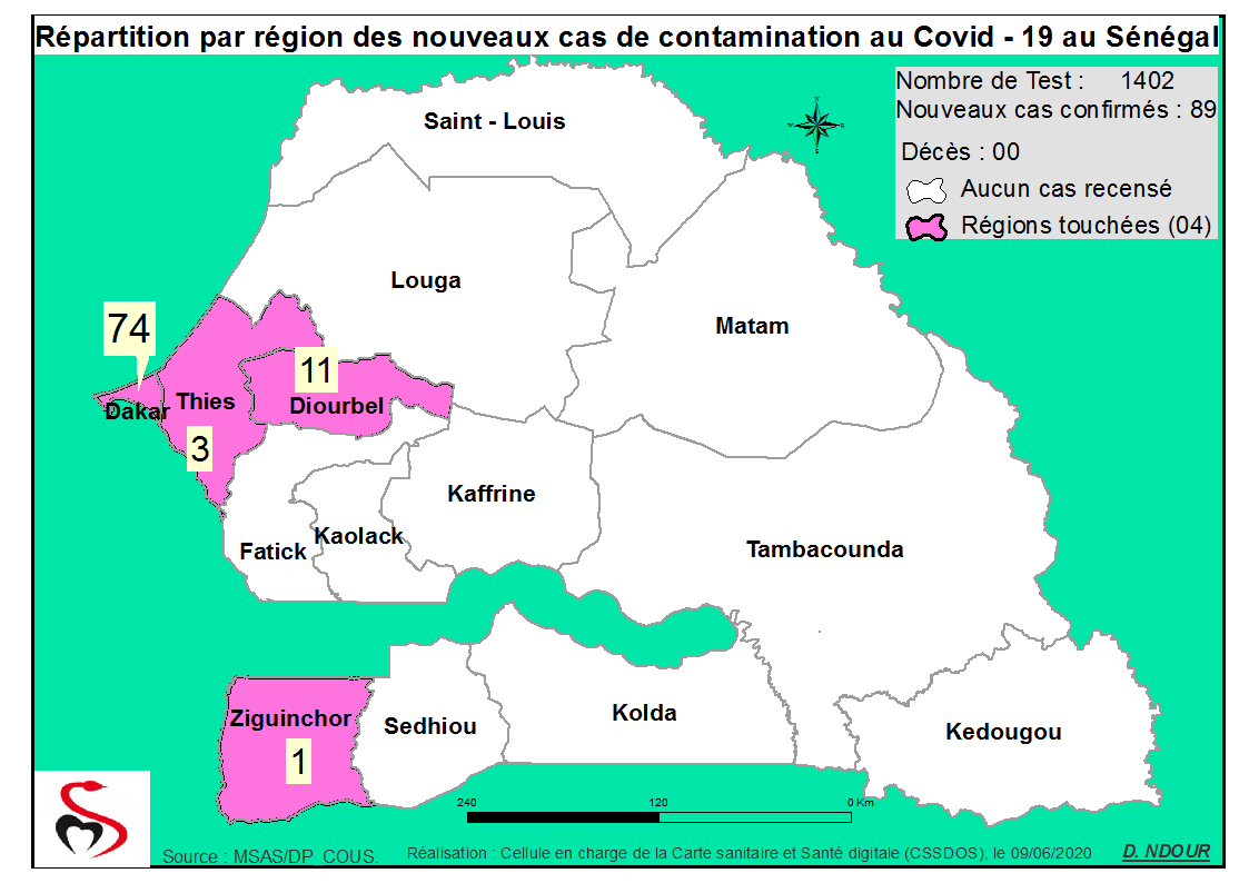Coronavirus : Répartition par Région et District des cas de contamination au Covid-19 au Sénégal du 09 Juin 2020
