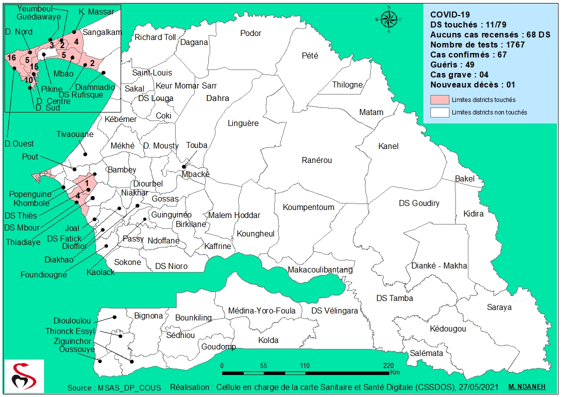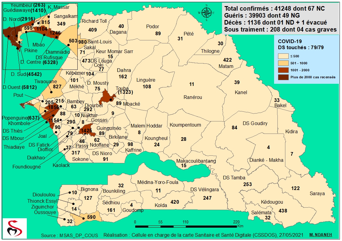 Coronavirus : Répartition par Région et District des cas de contamination à la Covid-19 au Sénégal du Jeudi 27 Mai 2021