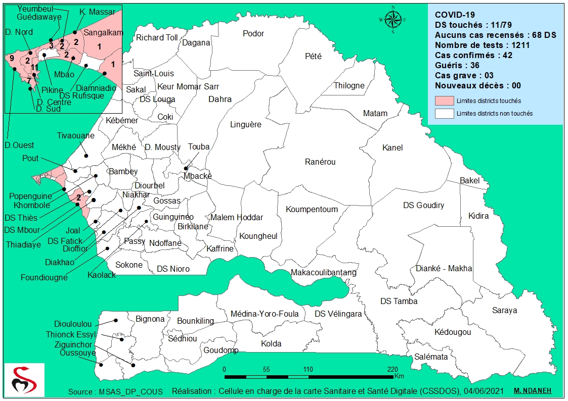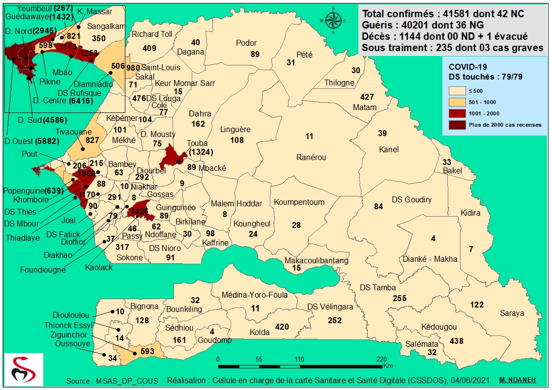 Accueil / Mediathèque / Phototheques / Coronavirus : Répartition par Région et District des cas de contamination à la Covid-19 au Sénégal du Vendredi 04 Juin 2021