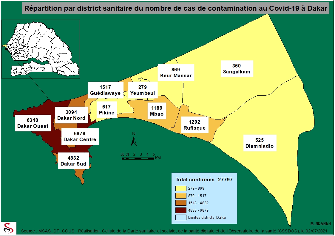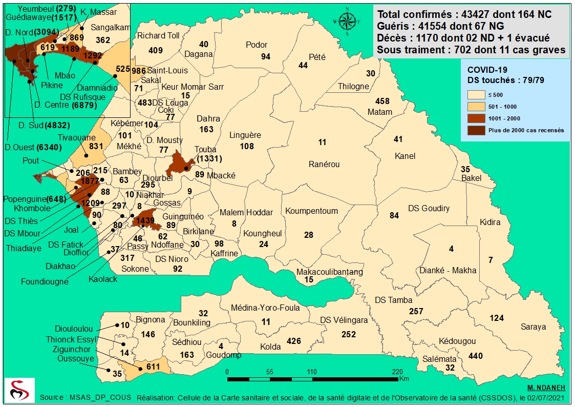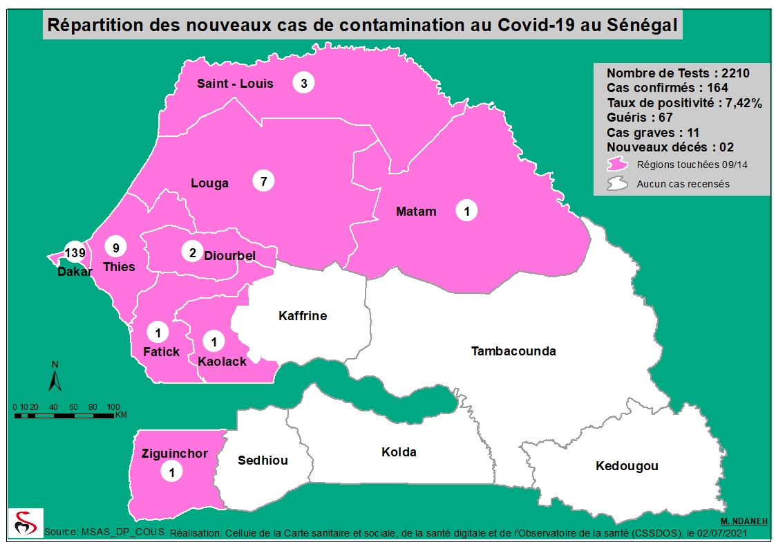 Coronavirus: Répartition par Région et District des cas de contamination à la Covid-19 au Sénégal du Vendredi 02 Juillet 2021