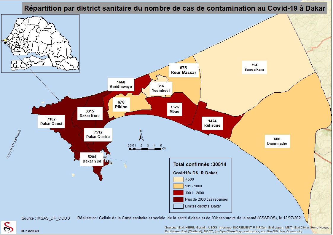 Coronavirus: Répartition par Région et District des cas de contamination à la Covid-19 au Sénégal du Lundi 12 Juillet 2021