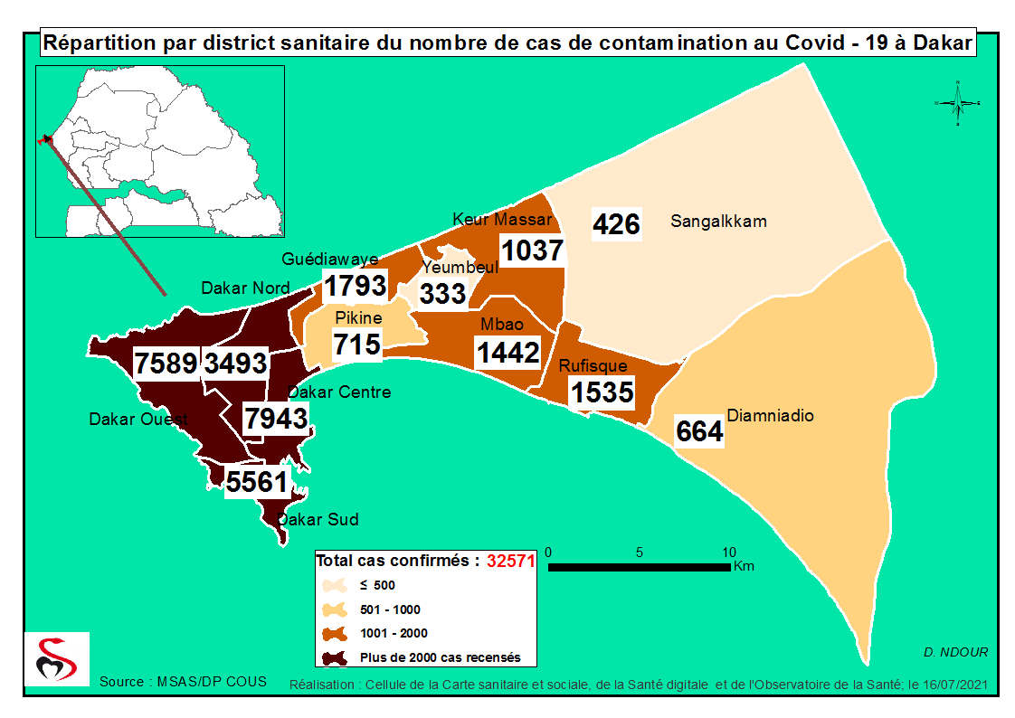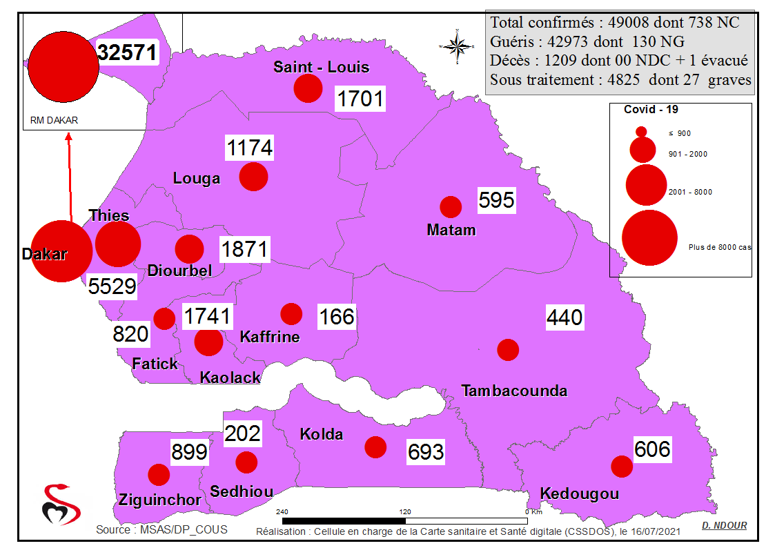 Coronavirus: Répartition par Région et District des cas de contamination à la Covid-19 au Sénégal du Vendredi 16 Juillet 2021