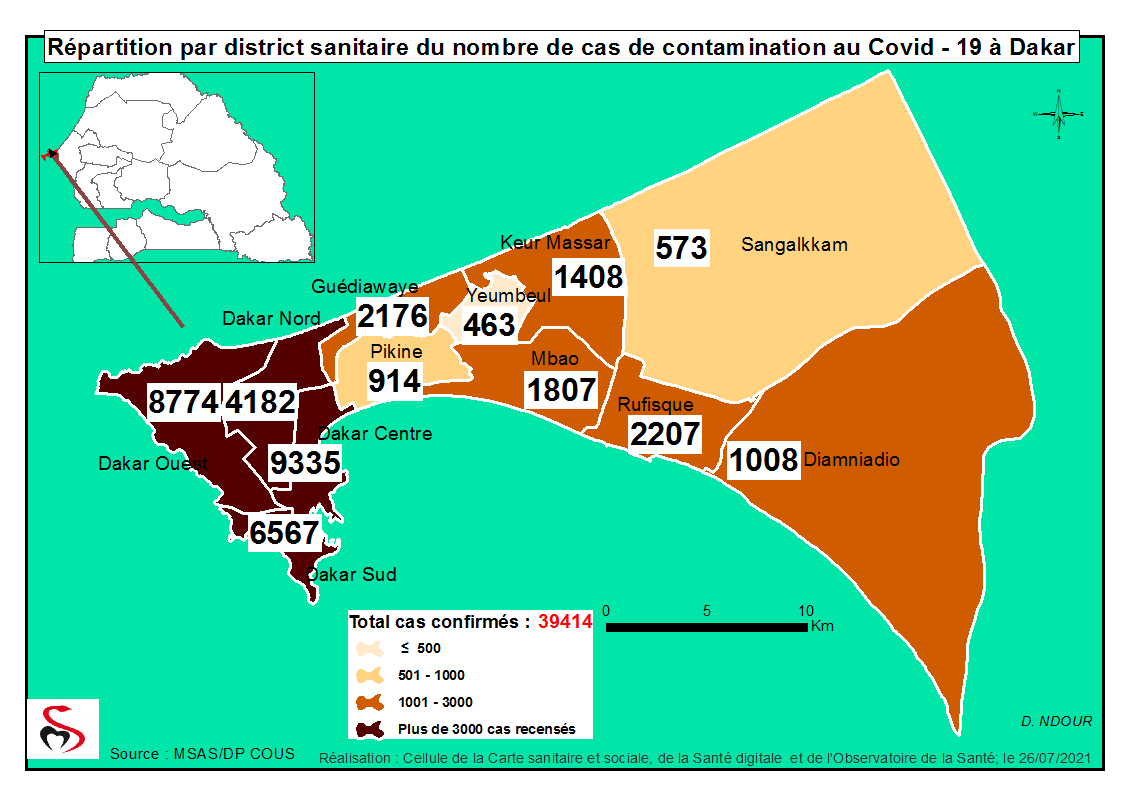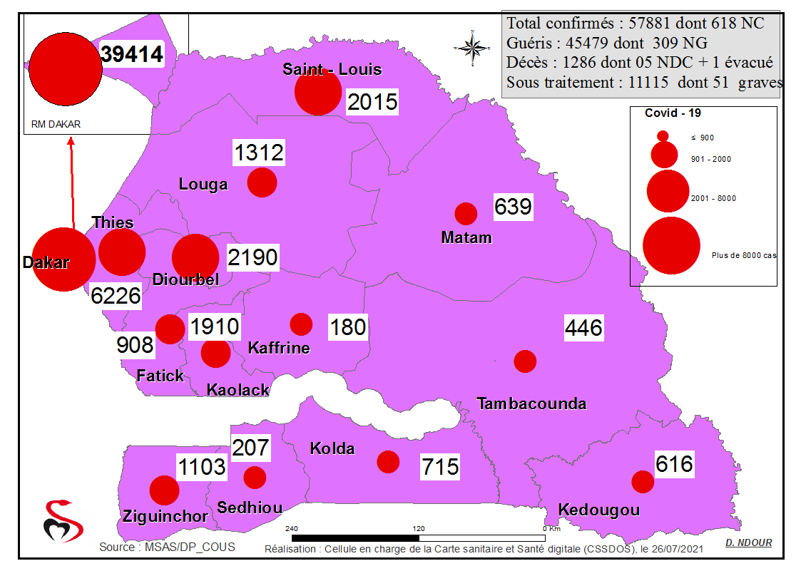 Coronavirus: Répartition par Région et District des cas de contamination à la Covid-19 au Sénégal du Lundi 26 Juillet 2021