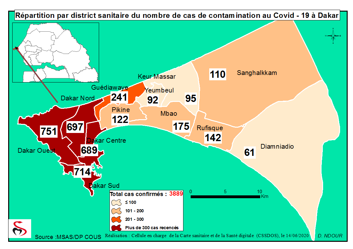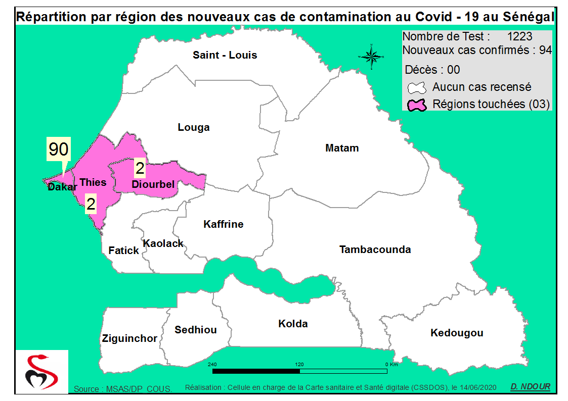 Coronavirus : Répartition par Région et District des cas de contamination au Covid-19 au Sénégal du 14 Juin 2020