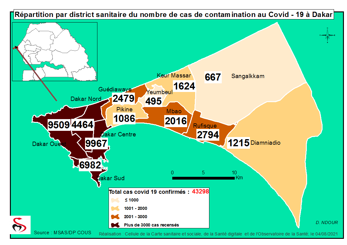 Coronavirus: Répartition par Région et District des cas de contamination à la Covid-19 au Sénégal du Mercredi 04 Août 2021