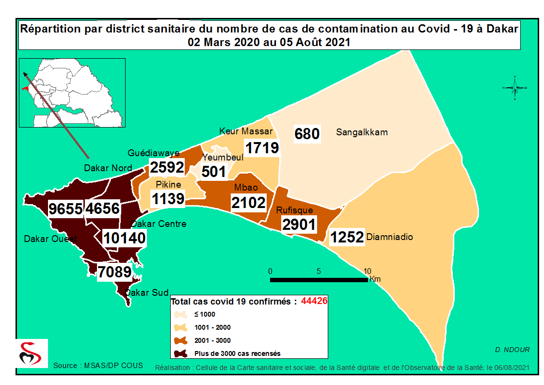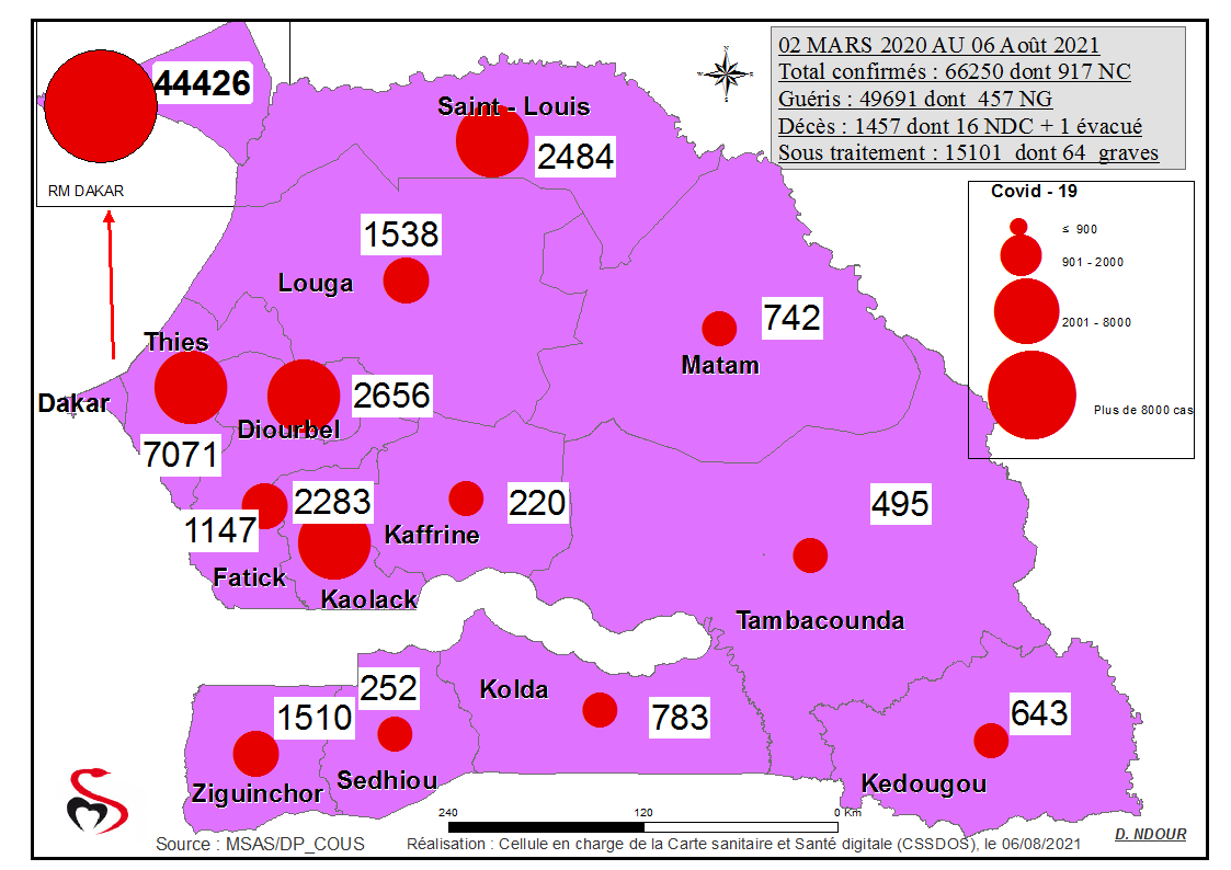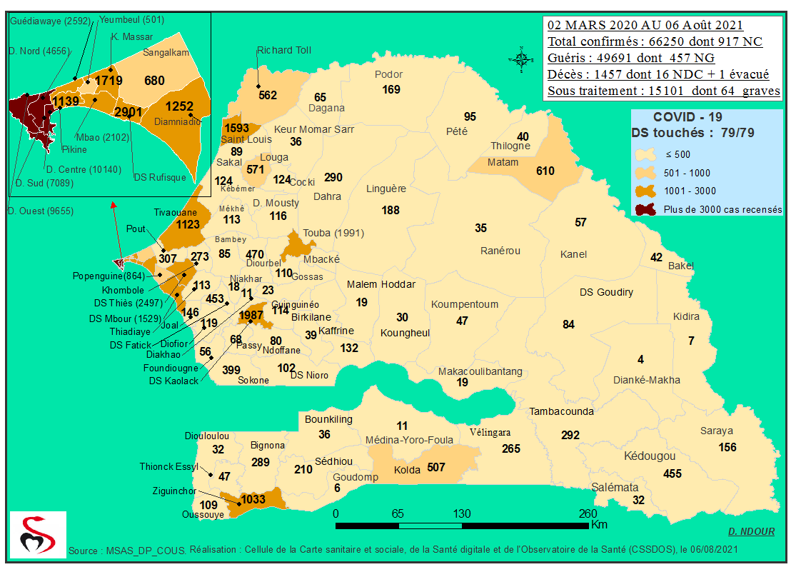 Coronavirus: Répartition par Région et District des cas de contamination à la Covid-19 au Sénégal du Vendredi 06 Août 2021