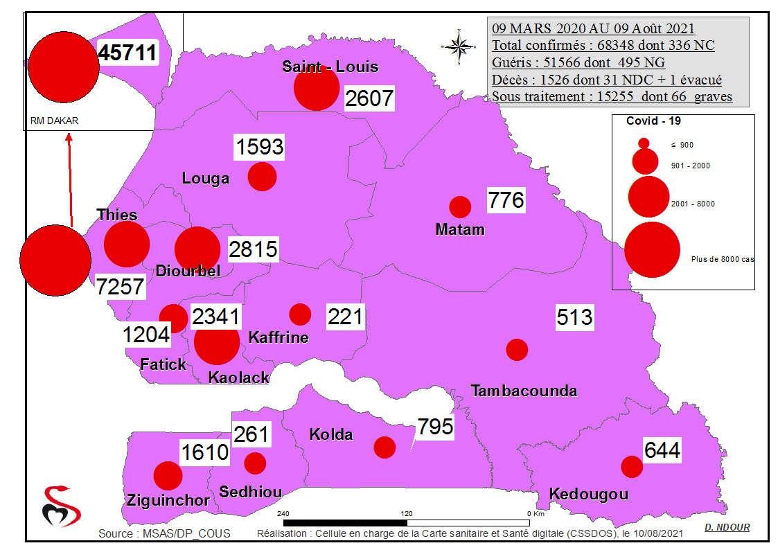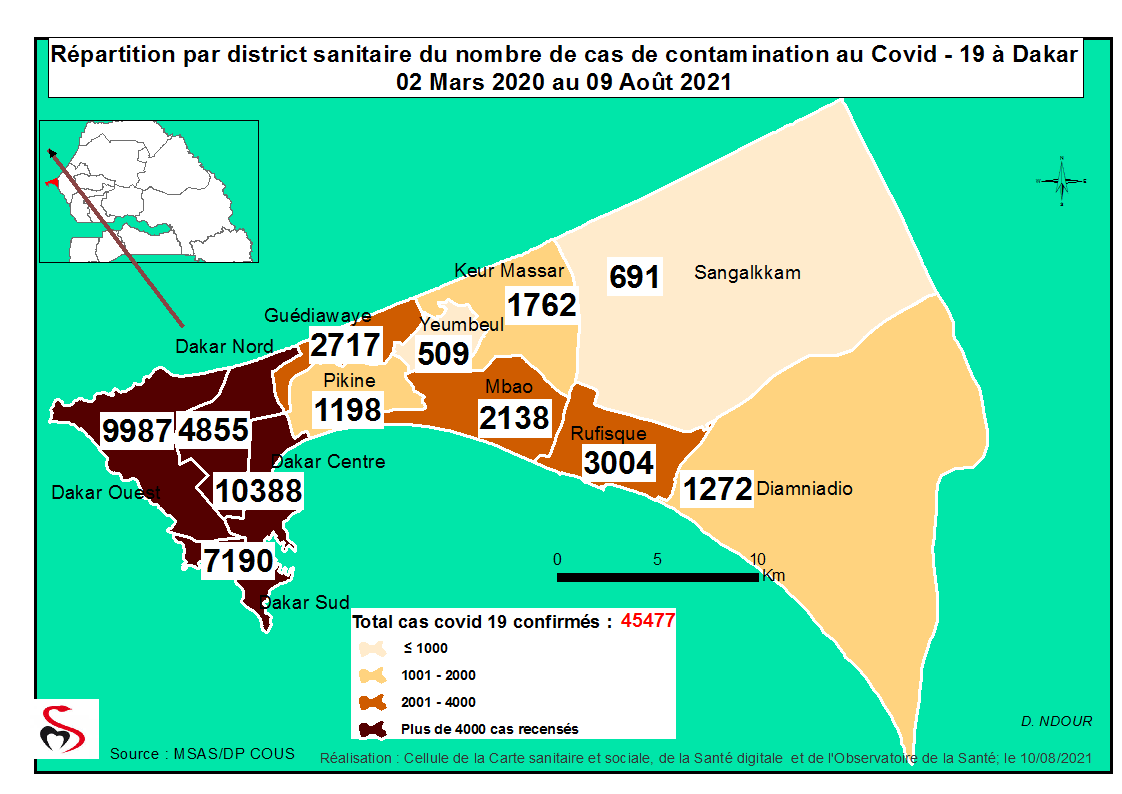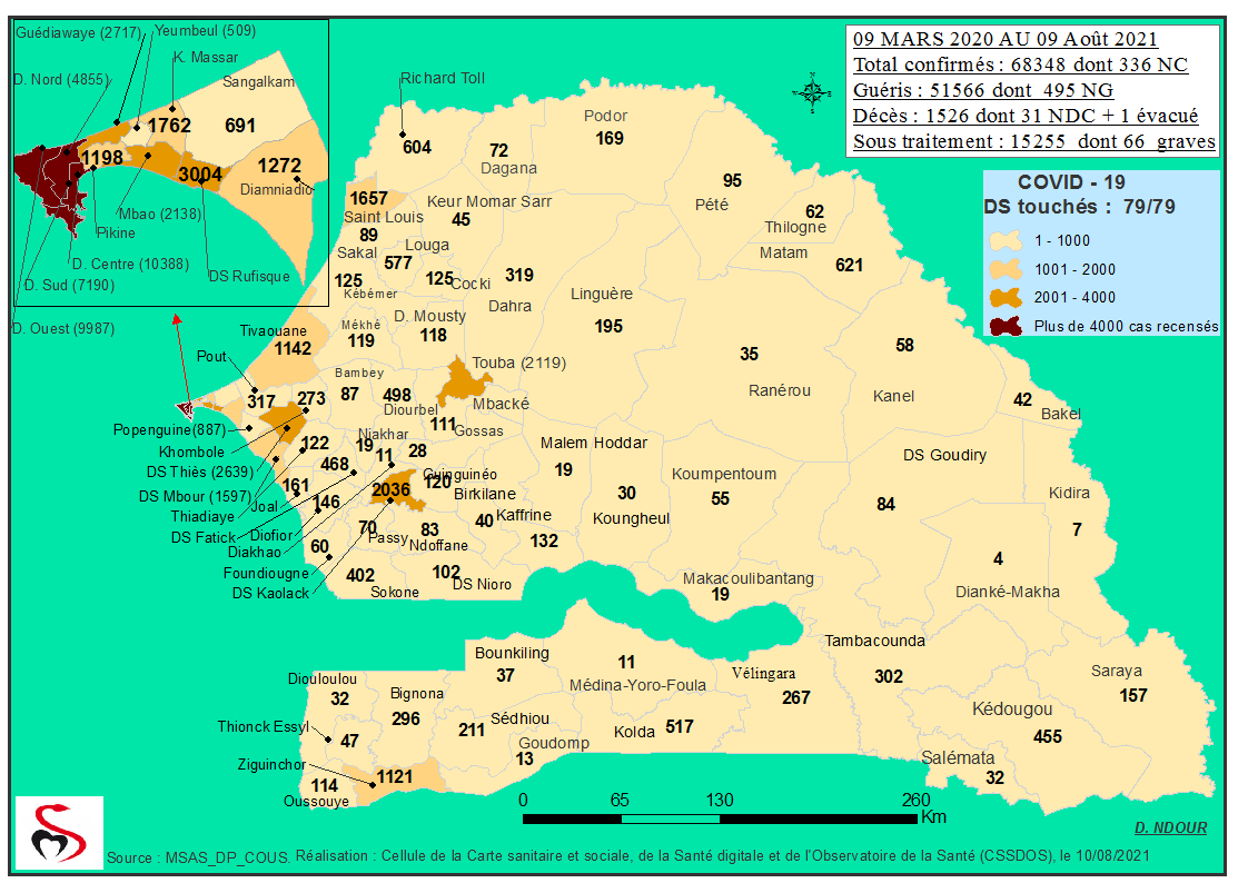 Coronavirus: Répartition par Région et District des cas de contamination à la Covid-19 au Sénégal du Mardi 10 Août 2021