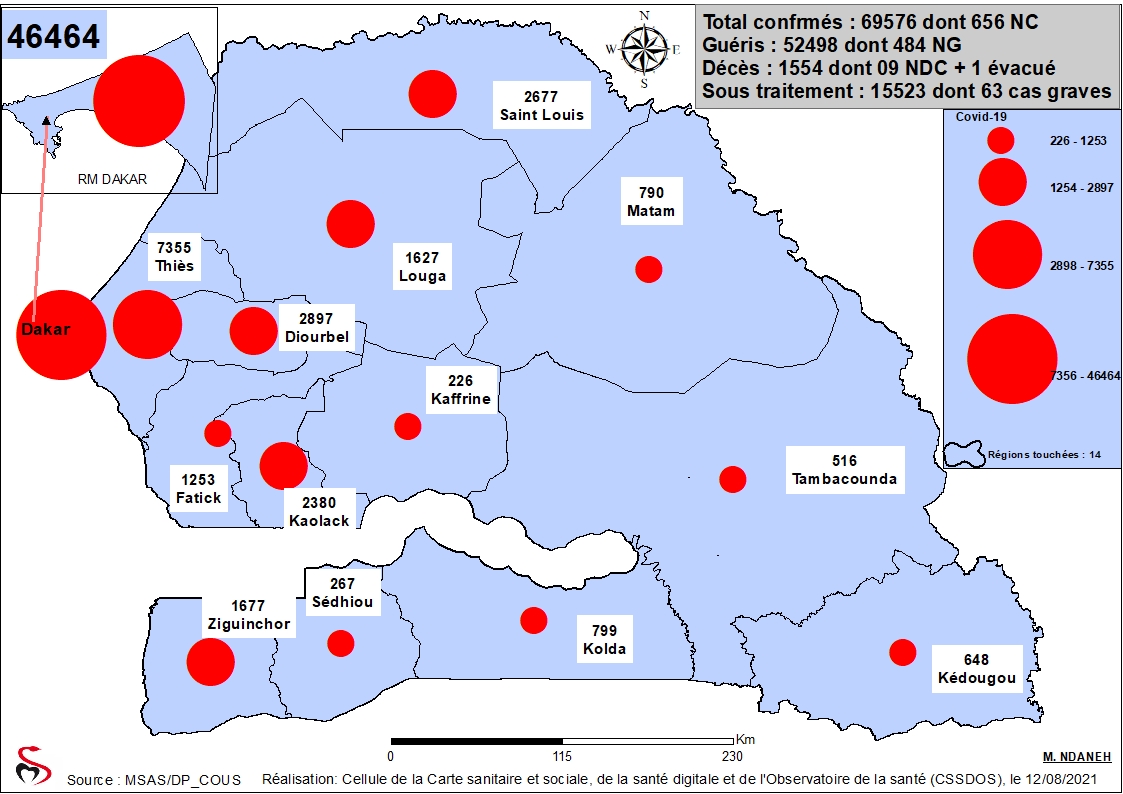 Coronavirus: Répartition par Région et District des cas de contamination à la Covid-19 au Sénégal du Jeudi 12 Août 2021