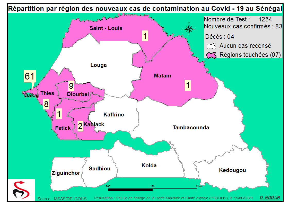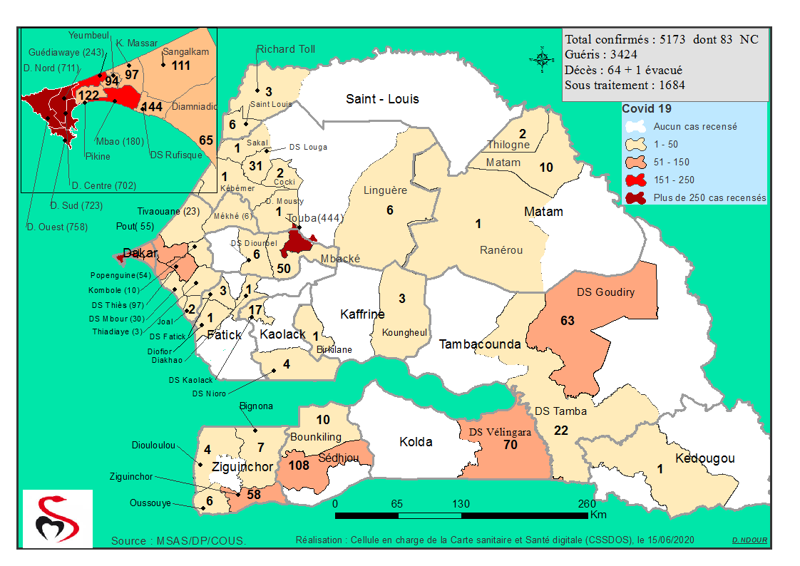 Coronavirus : Répartition par Région et District des cas de contamination au Covid-19 au Sénégal du 15 Juin 2020
