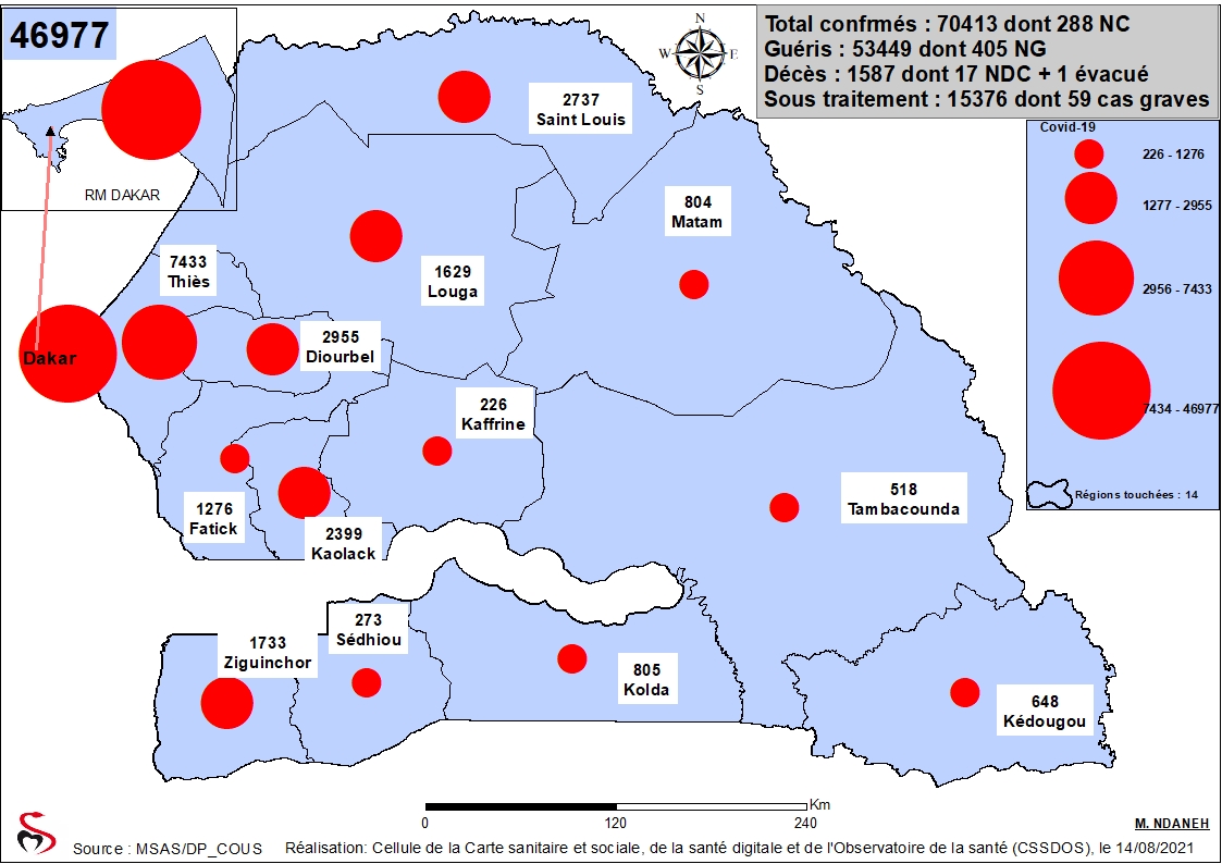 Coronavirus: Répartition par Région et District des cas de contamination à la Covid-19 au Sénégal du Samedi 14 Août 2021