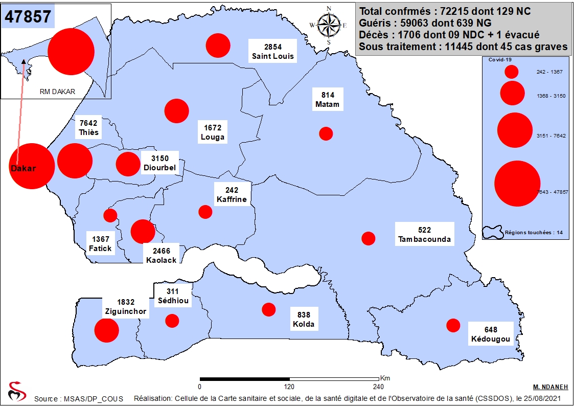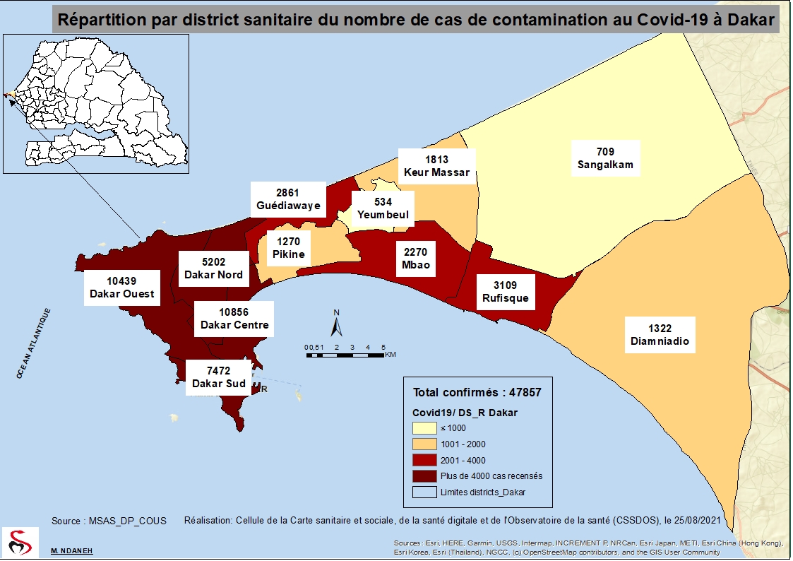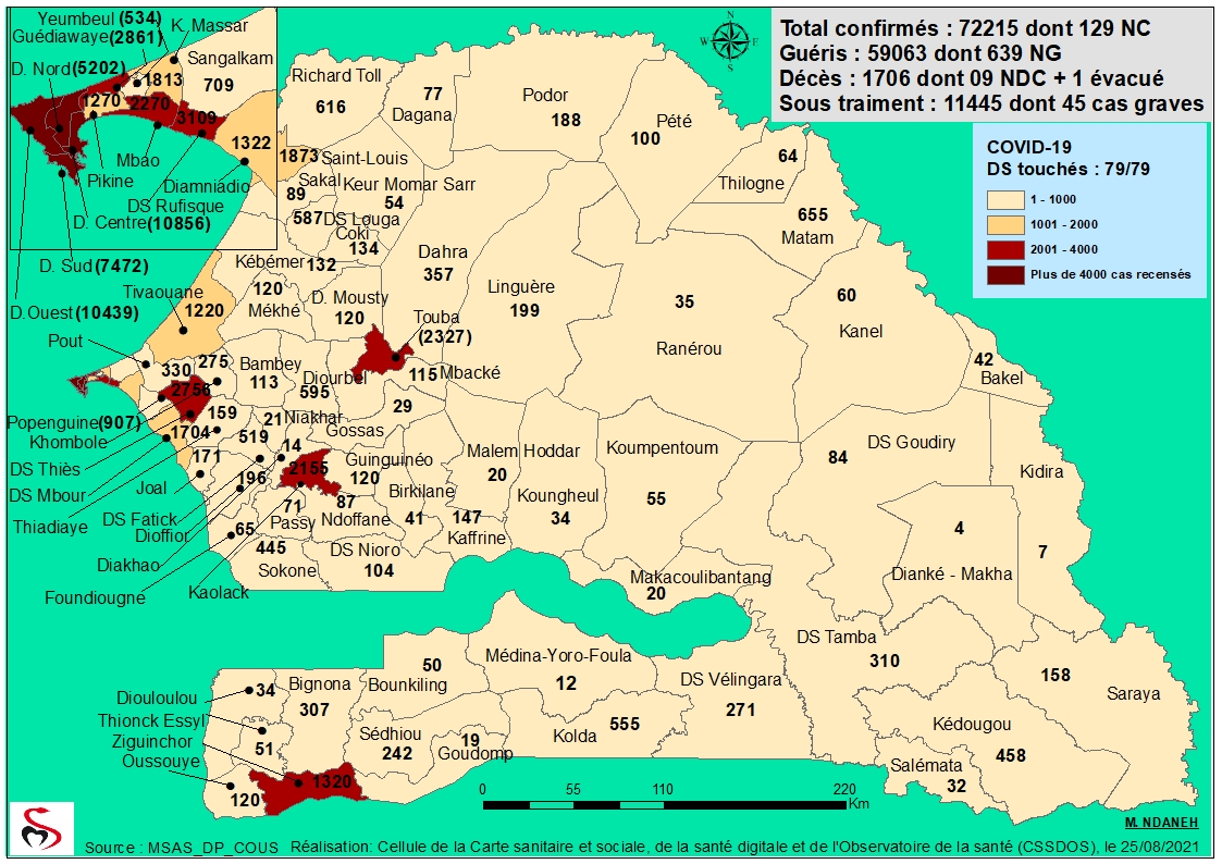 Coronavirus: Répartition par Région et District des cas de contamination à la Covid-19 au Sénégal du Mercredi 25 Août 2021