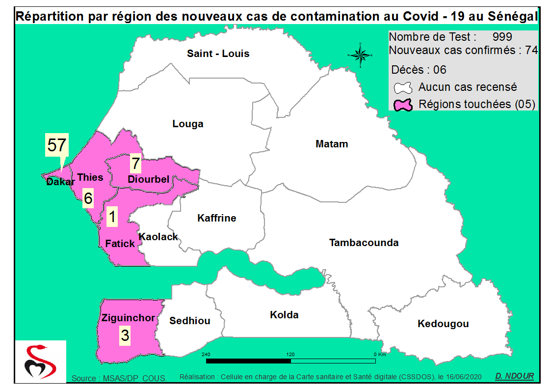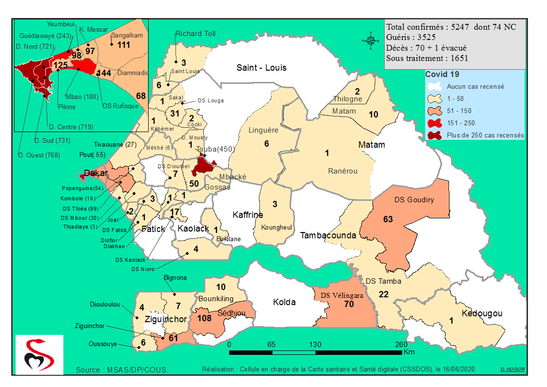 Coronavirus : Répartition par Région et District des cas de contamination au Covid-19 au Sénégal du 16 Juin 2020