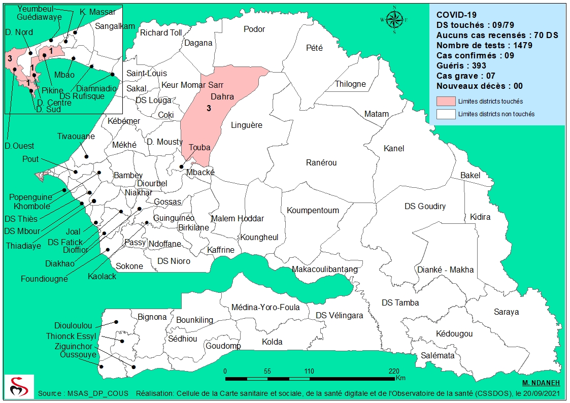 Accueil / Mediathèque / Phototheques / Coronavirus: Répartition par Région et District des cas de contamination à la Covid-19 au Sénégal du Lundi 20 Septembre 2021