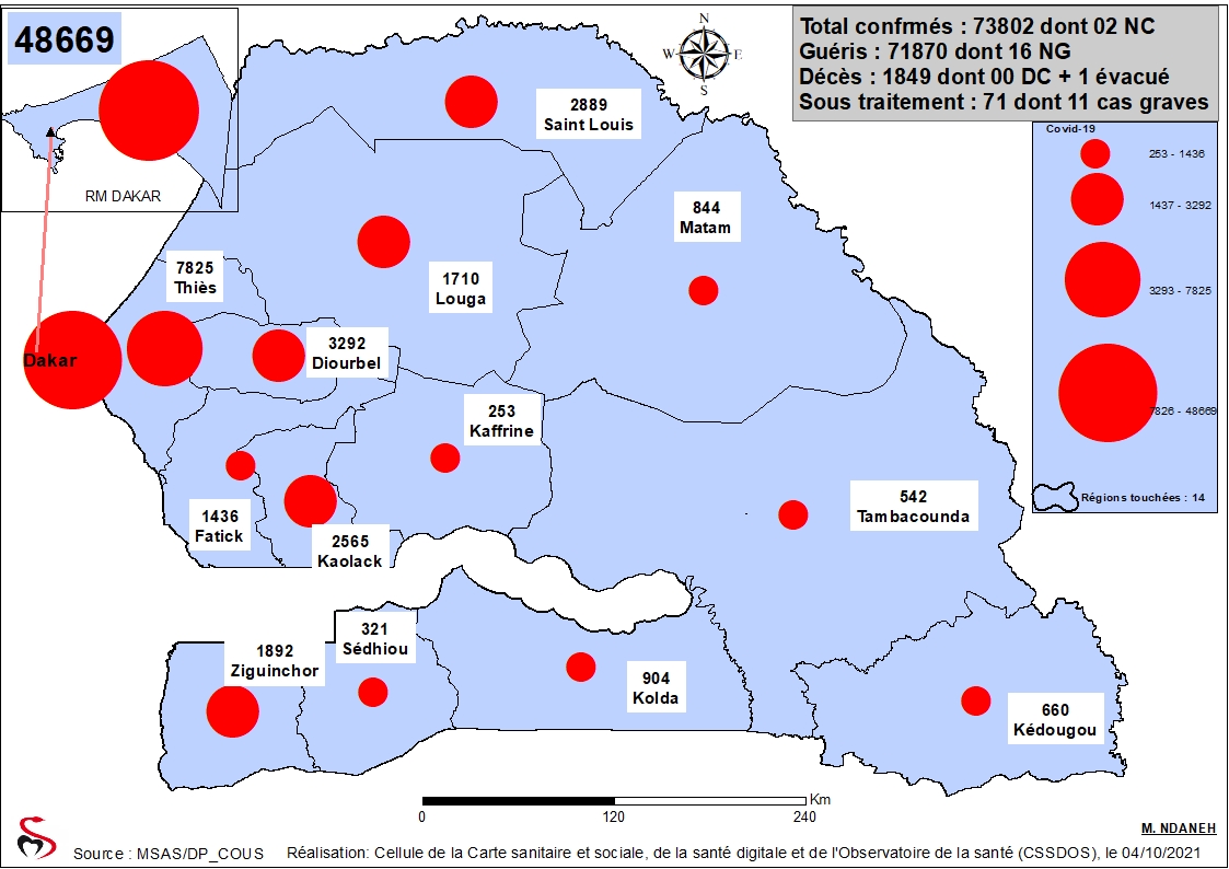 Coronavirus: Répartition par Région et District des cas de contamination à la Covid-19 au Sénégal du Lundi 04 Octobre 2021