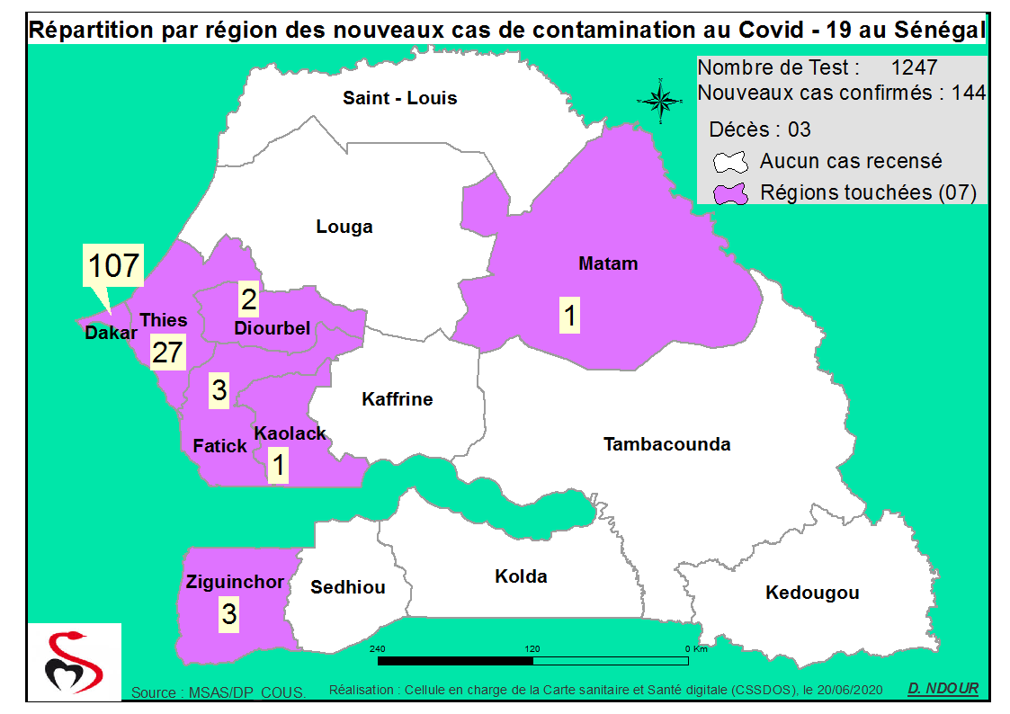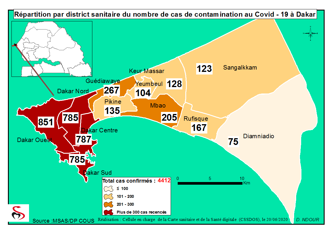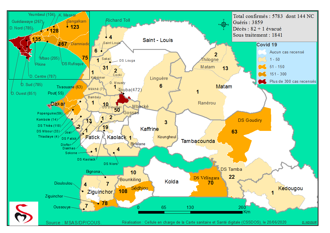 Coronavirus : Répartition par Région et District des cas de contamination au Covid-19 au Sénégal du 20 Juin 2020