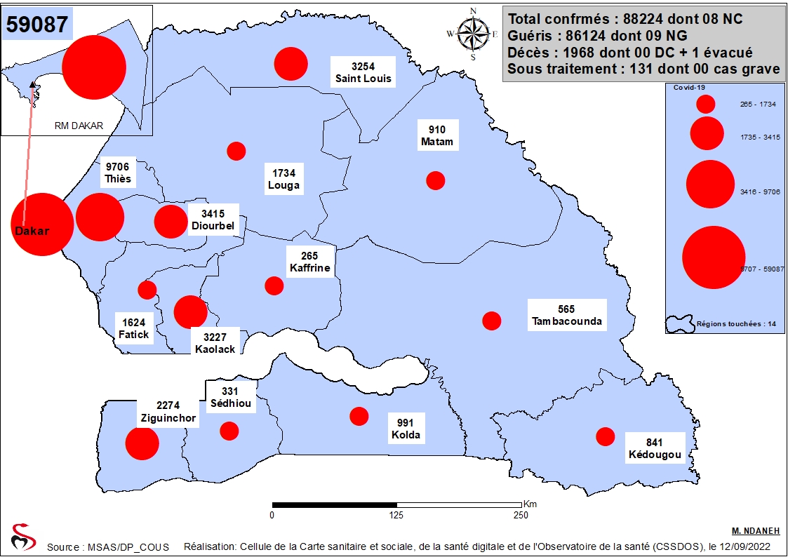 Accueil / Mediathèque / Phototheques / Coronavirus: Répartition par Région et District des cas de contamination à la Covid-19 au Sénégal du Lundi 12 Septembre 2022