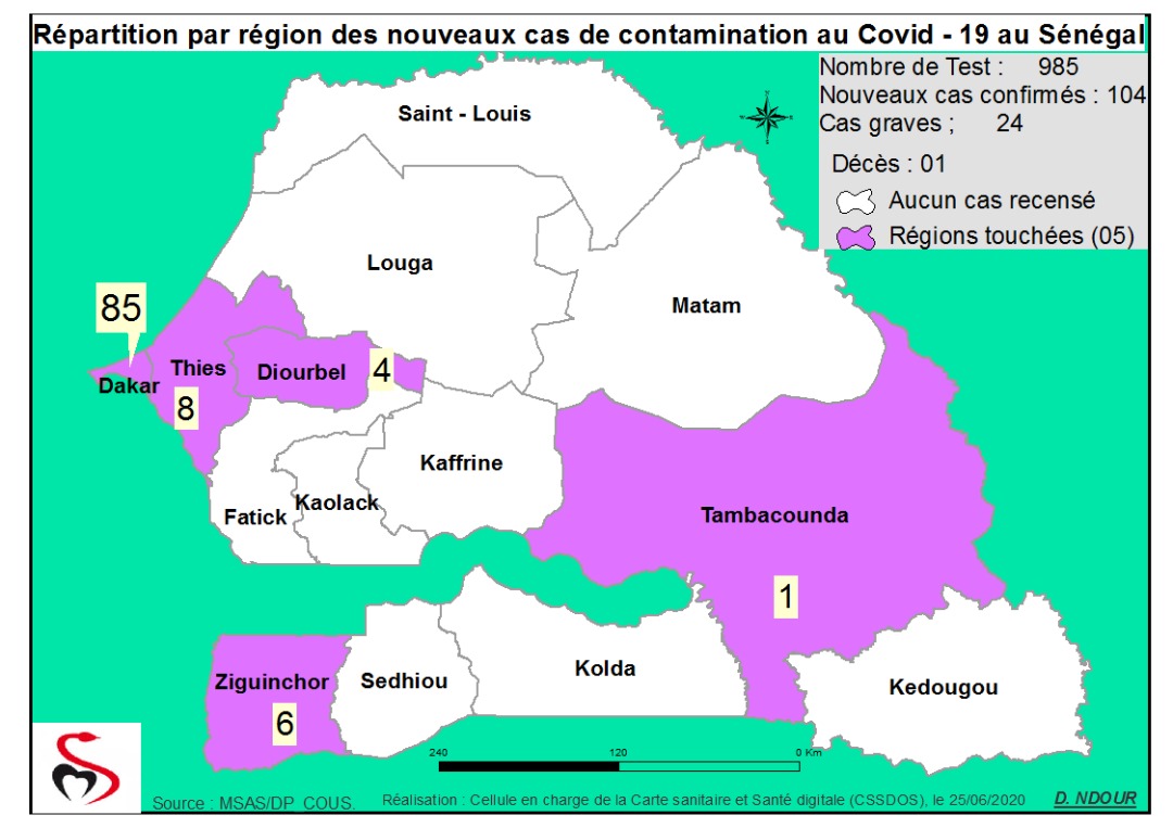 Coronavirus : Répartition par Région et District des cas de contamination au Covid-19 au Sénégal du 25 Juin 2020
