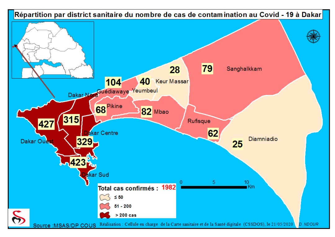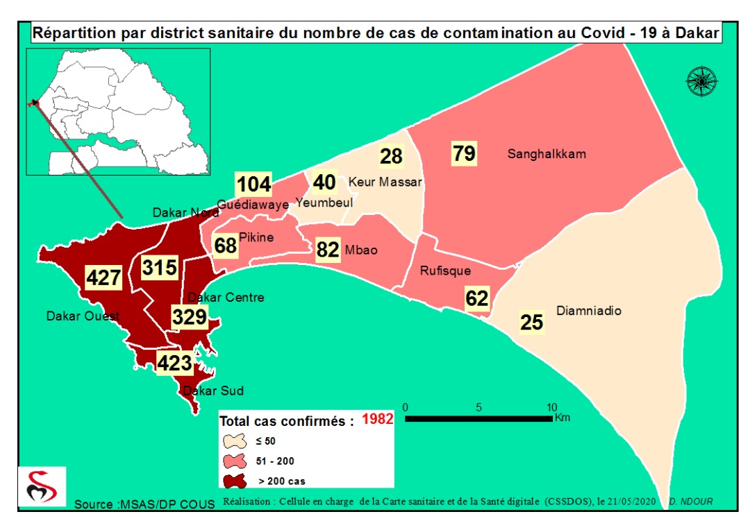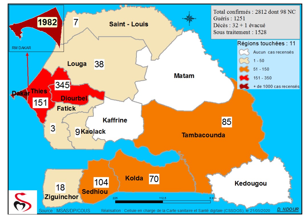 Coronavirus : Répartition par Région et District des cas de contamination au Covid-19 au Sénégal du 21 Mai 2020