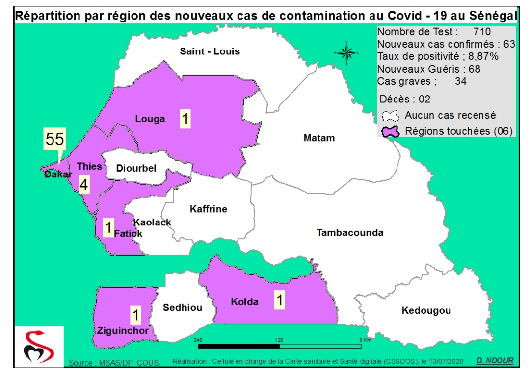 Coronavirus : Répartition par Région et District des cas de contamination au Covid-19 au Sénégal du 13 juillet 2020