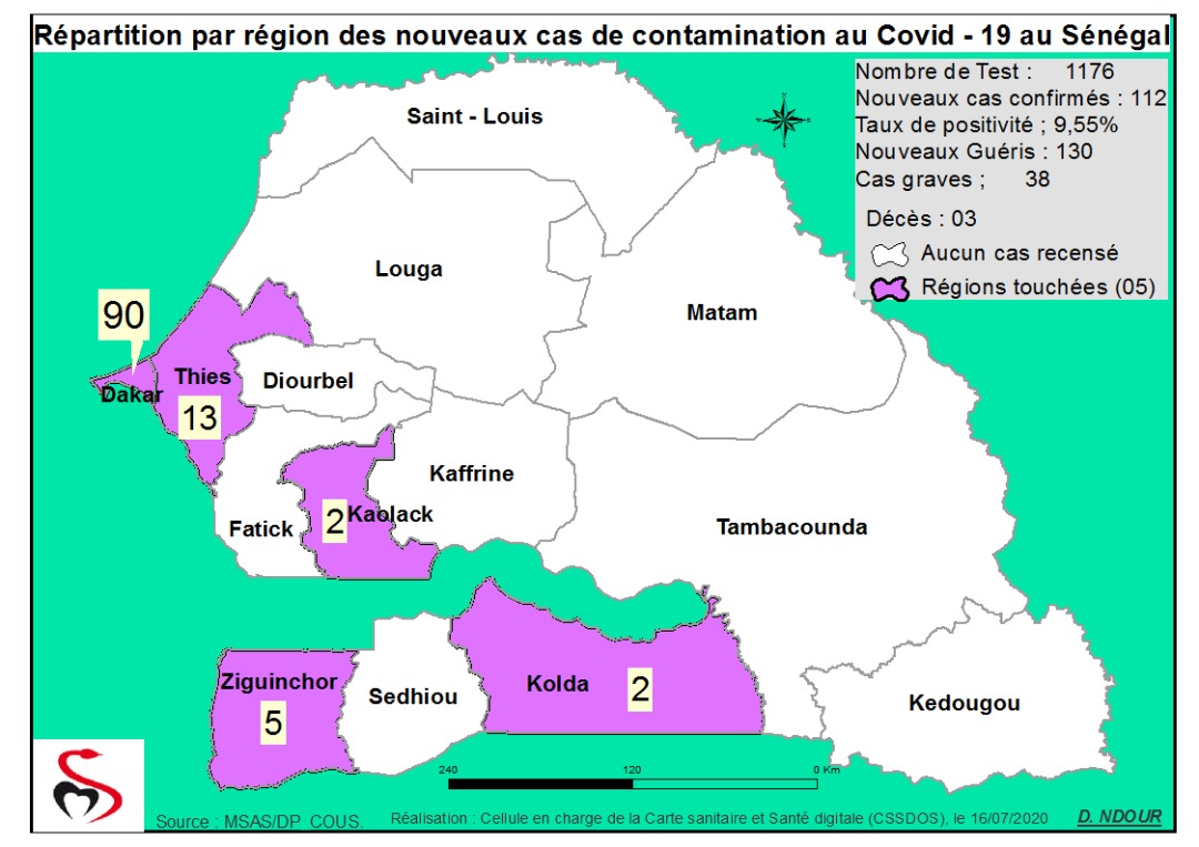 Coronavirus : Répartition par Région et District des cas de contamination au Covid-19 au Sénégal du 16 juillet 2020