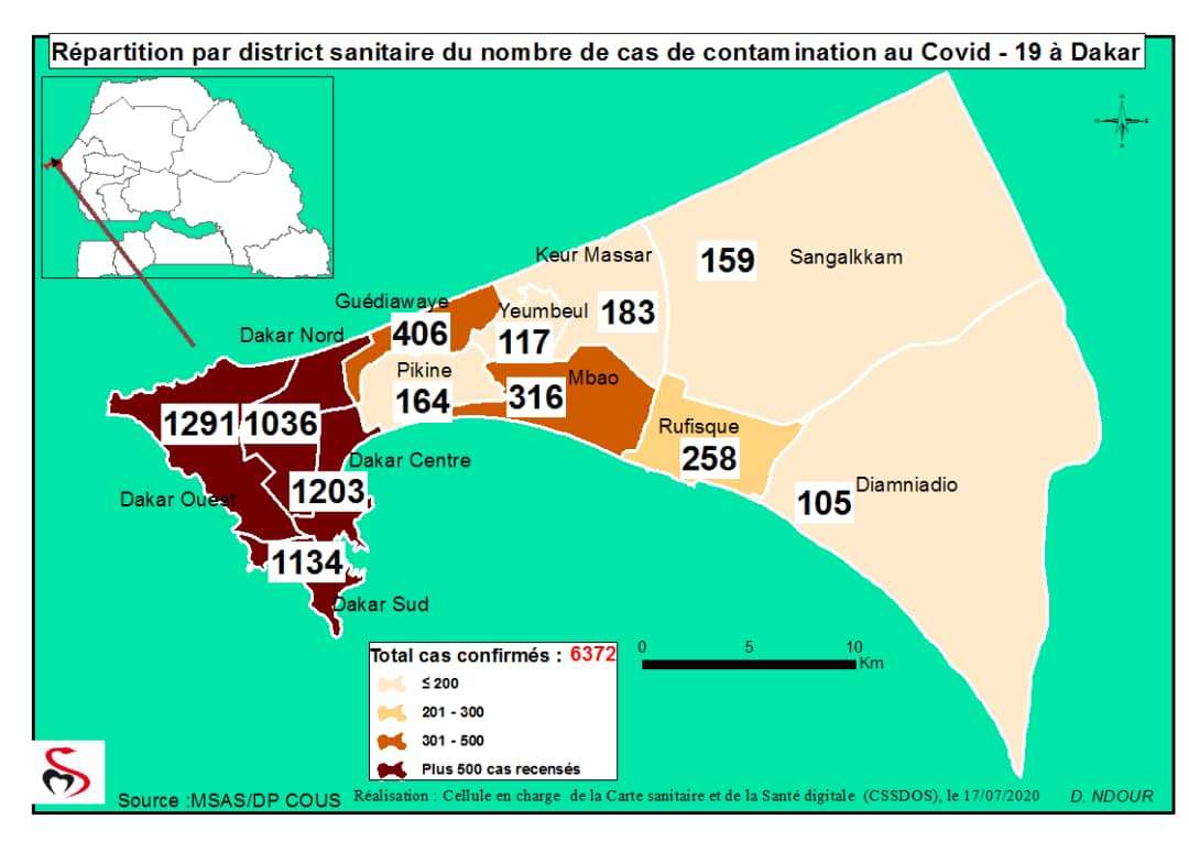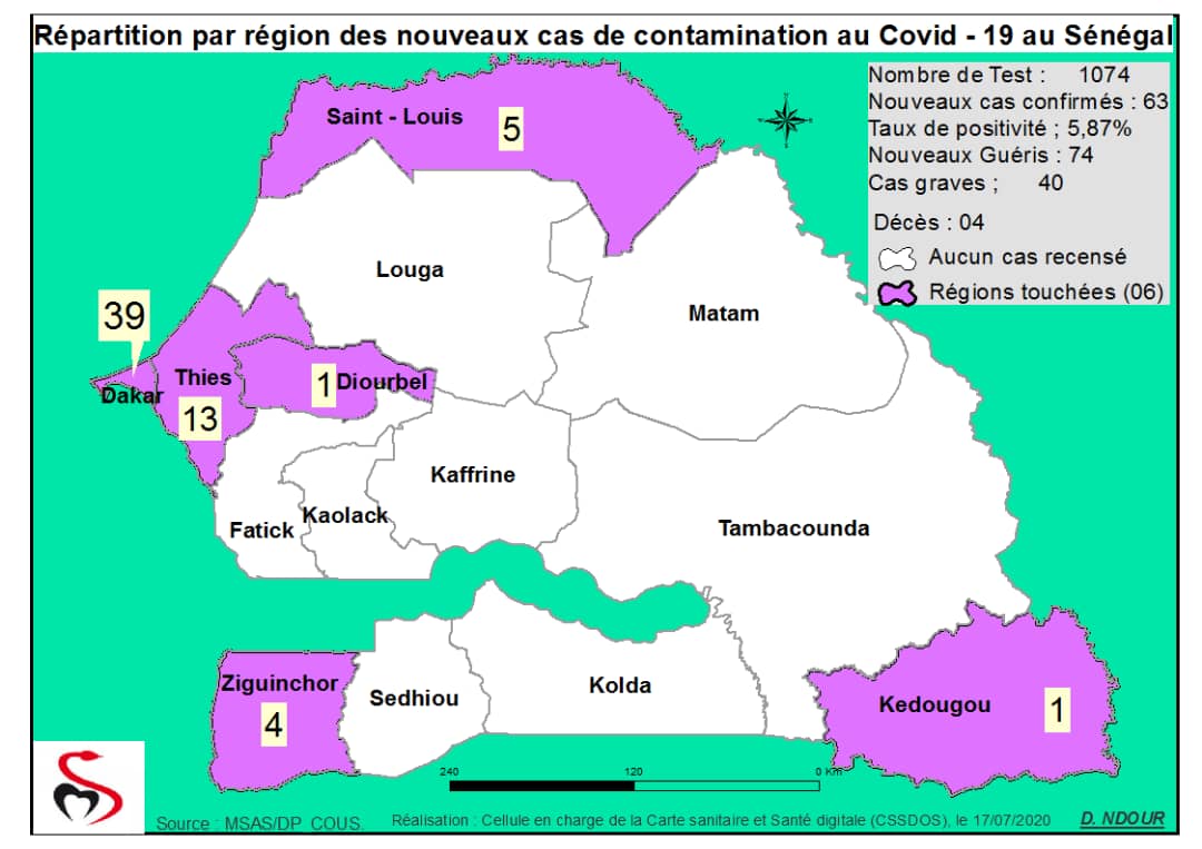 Coronavirus : Répartition par Région et District des cas de contamination au Covid-19 au Sénégal du 17 juillet 2020