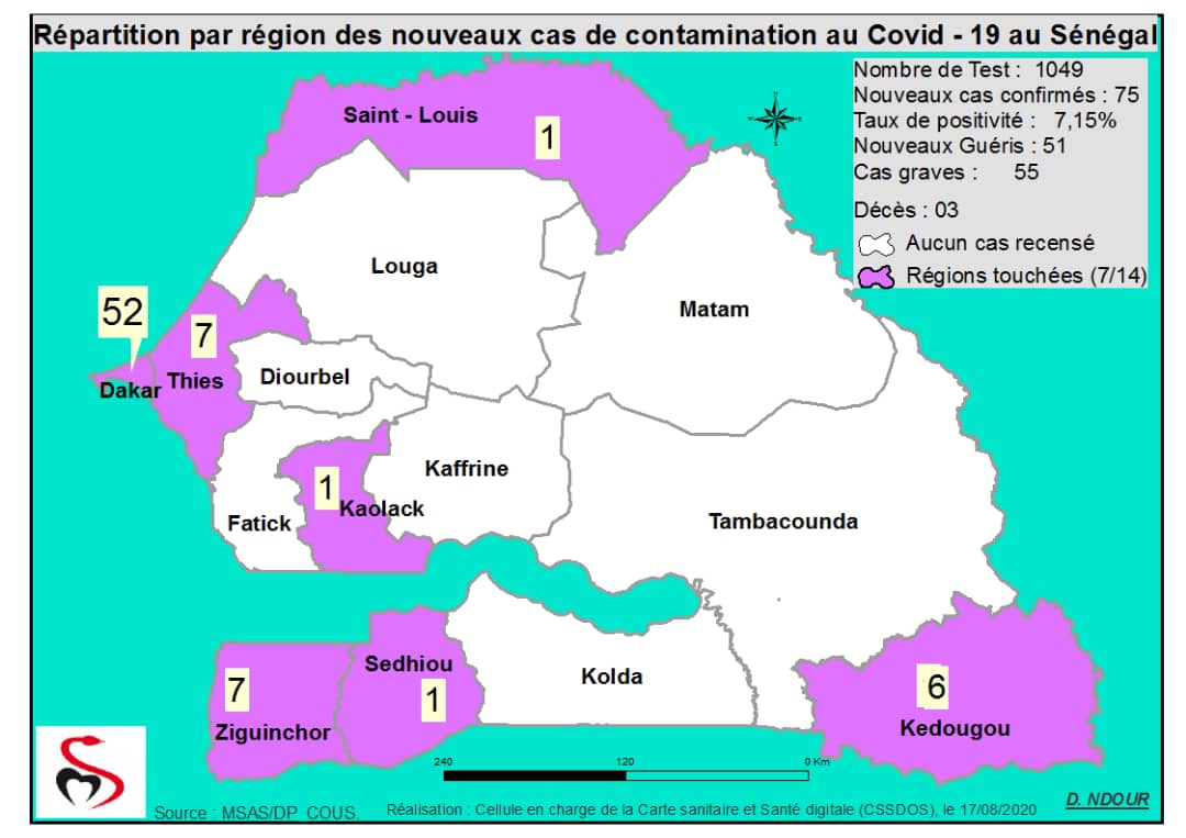 Coronavirus : Répartition par Région et District des cas de contamination à la Covid-19 au Sénégal du 17 Août 2020