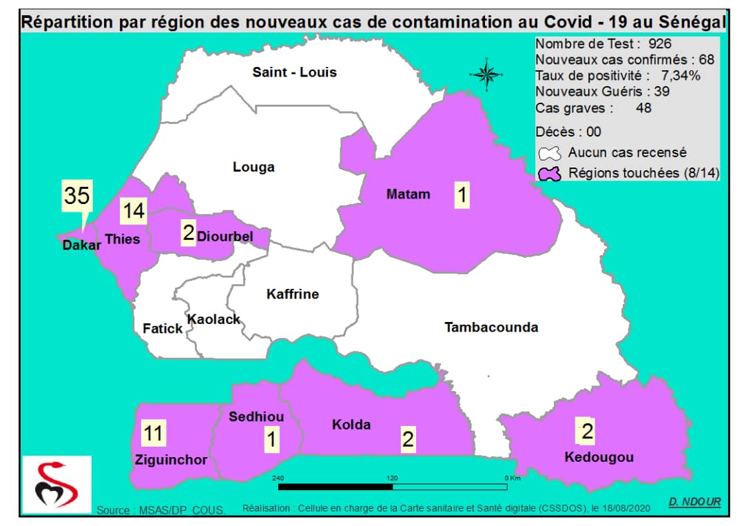 Coronavirus : Répartition par Région et District des cas de contamination à la Covid-19 au Sénégal du 18 Août 2020