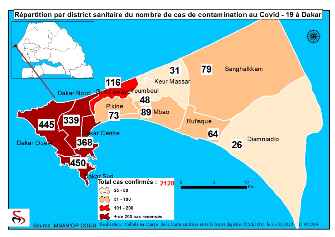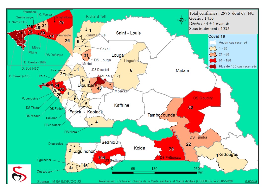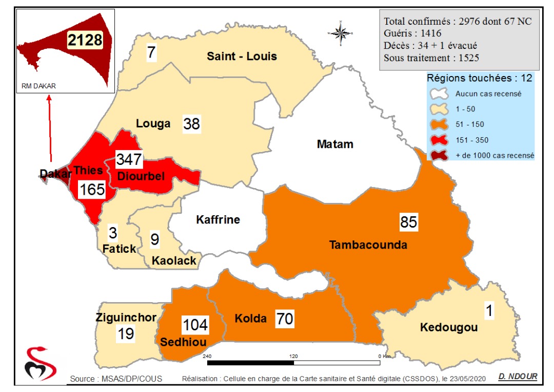 Coronavirus : Répartition par Région et District des cas de contamination au Covid-19 au Sénégal du 23 Mai 2020