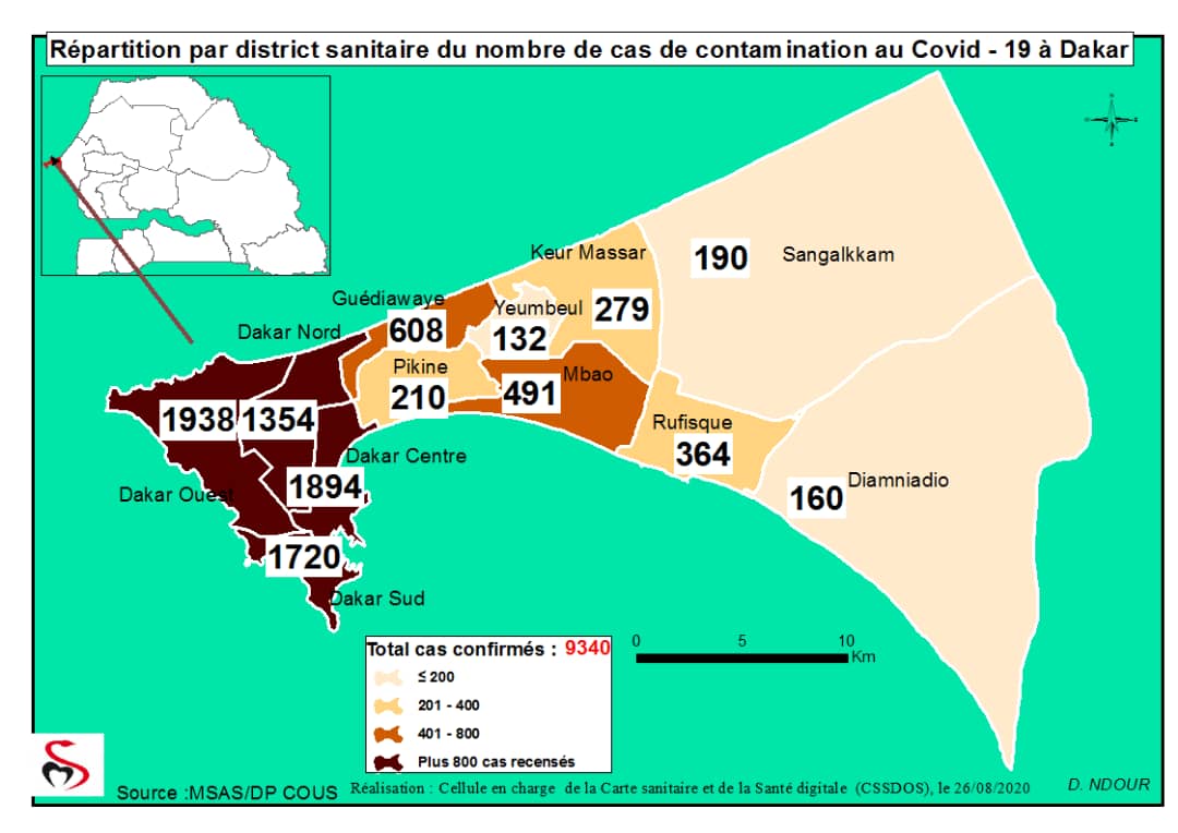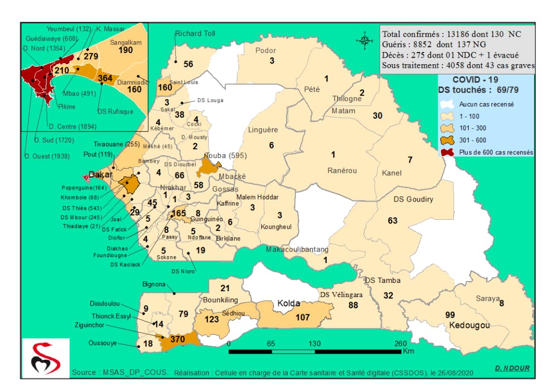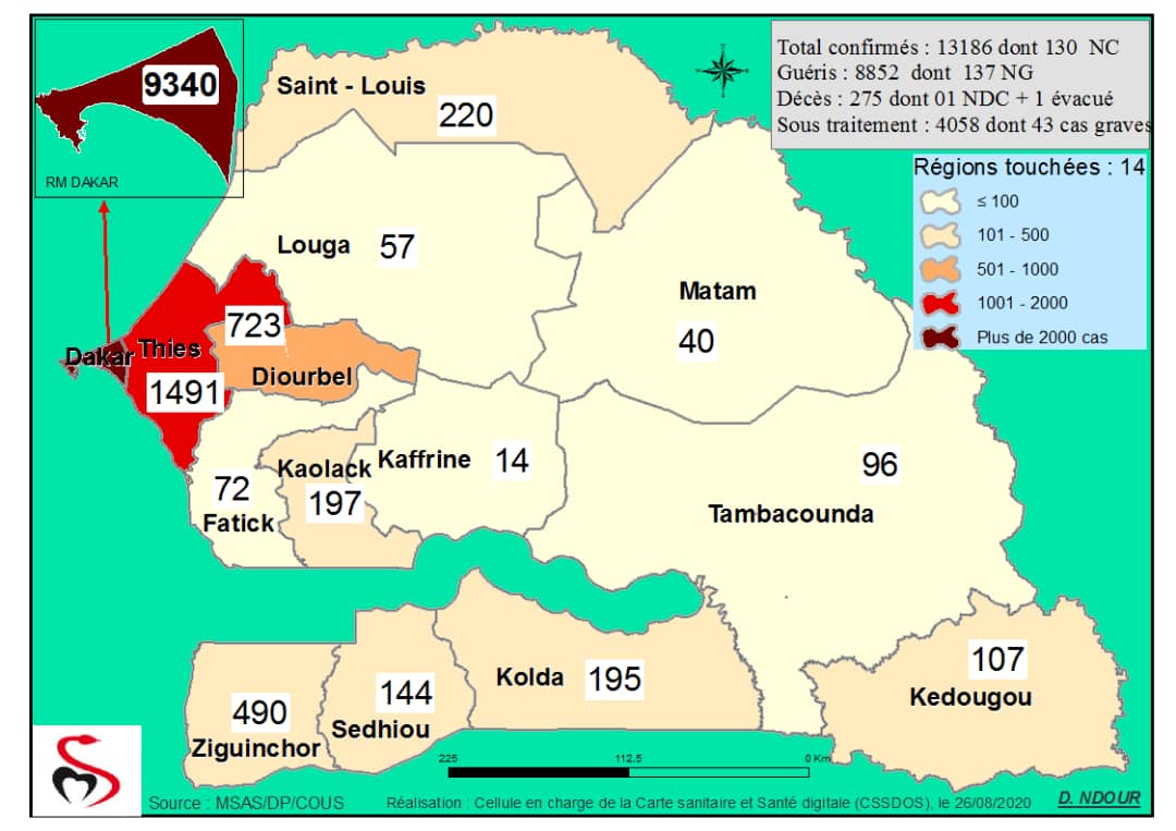 Accueil / Mediathèque / Phototheques / Coronavirus : Répartition par Région et District des cas de contamination à la Covid-19 au Sénégal du 26 Août 2020