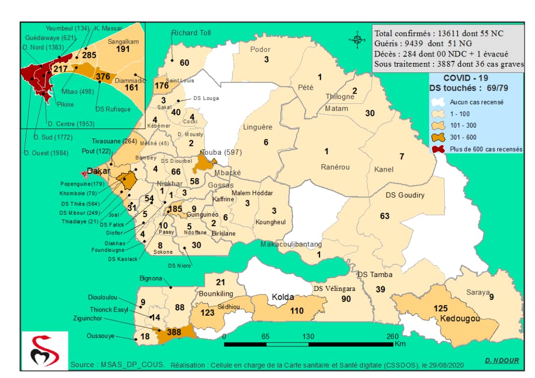 Coronavirus : Répartition par Région et District des cas de contamination à la Covid-19 au Sénégal du 31 Août 2020